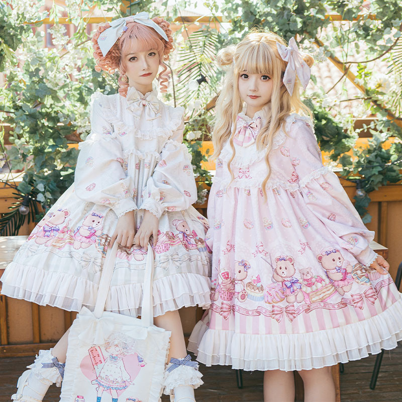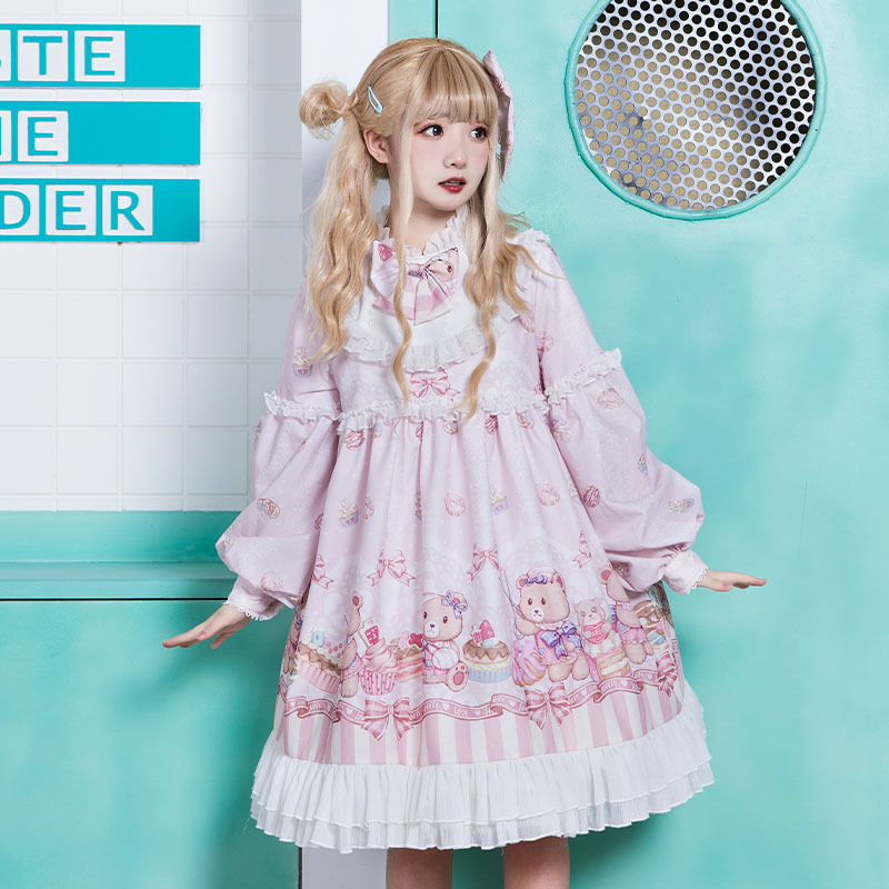 [in stock] Nurse Bear Gemini op Long Sleeve Cute dress Leopard A Cat Original lolita