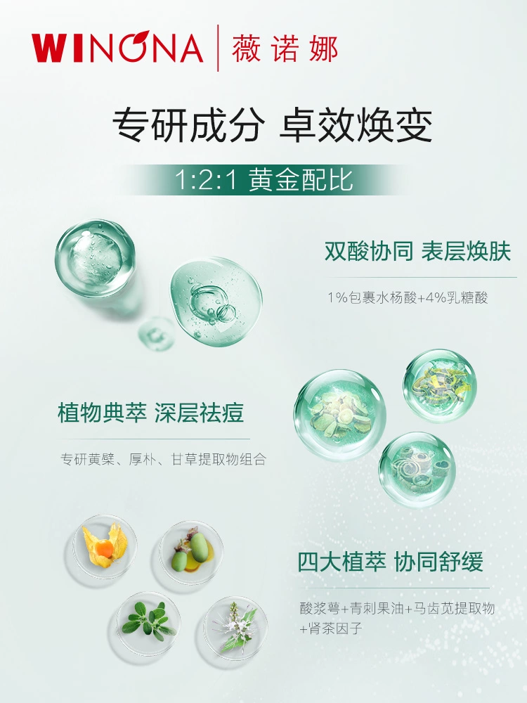 [In stock on Double 11] Winona Lactobionic Acid Acne Clearing Essence to remove acne and improve redness on acne-sensitive skin