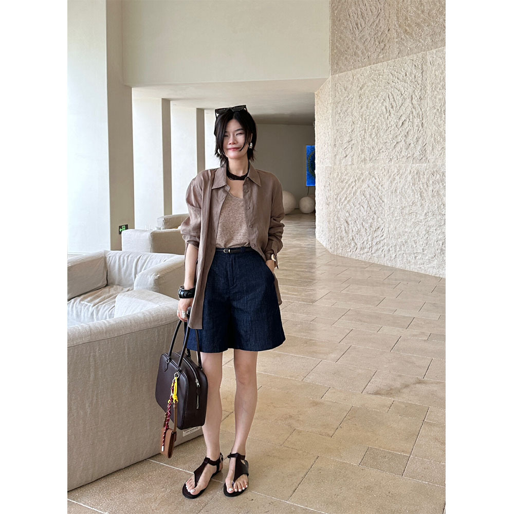 | nameOriginal | in stock ONIVINTAGE Linen Lyocell Denim Casual Shorts with Leather Belt OH242P1789 |