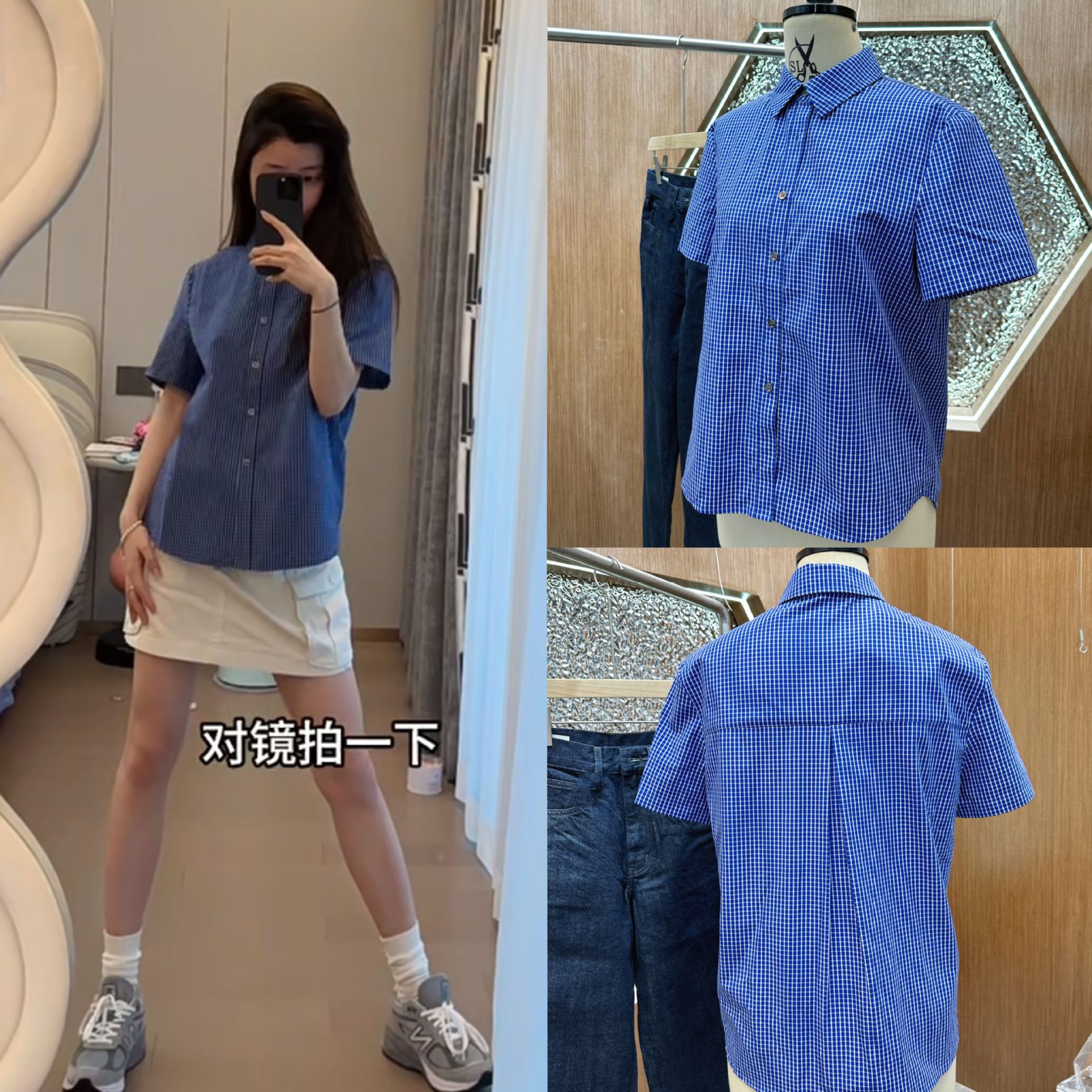 | nameOriginal | in stock/Otaku Style Retro Blue and White Slim-Fit Plaid Short Sleeve Shirt & White Workwear Skirt |
