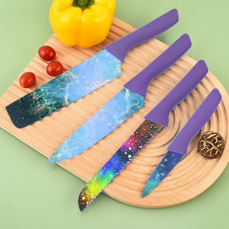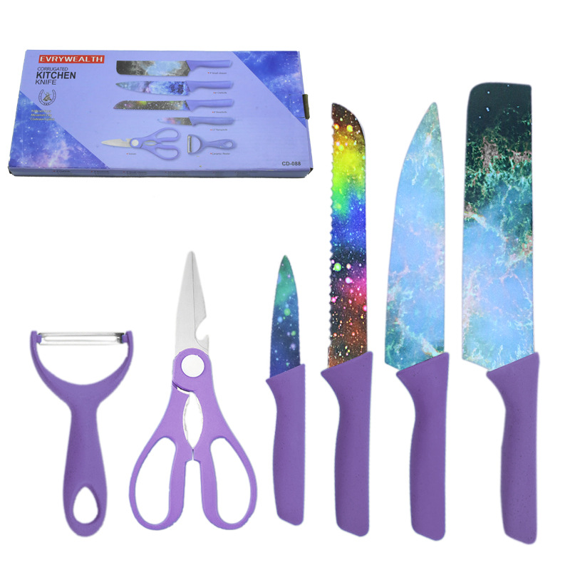 | nameOriginal | in stock Painting Stainless Steel Printed Starry Sky Wheat Straw Six-piece Knife Fruit Knife Chopper Knife suit Household Gift Box |