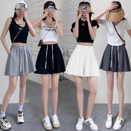 in stock Pregnant Women Summer New A- line Slimming Pleated Outer Wear Culottes Casual Ballet Style Sports Wide Leg Shorts