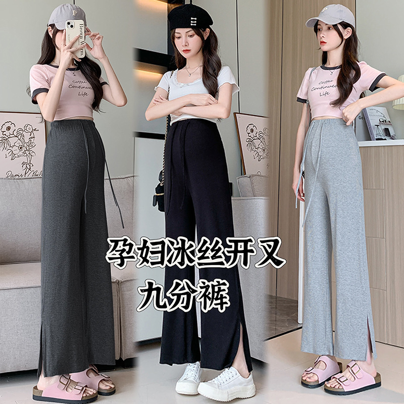 in stock Pregnant Women’s Straight Pants Summer Thin Modal 2024 New Summer Split Cropped Pants Pregnant Women’s Pants for Outer Wear