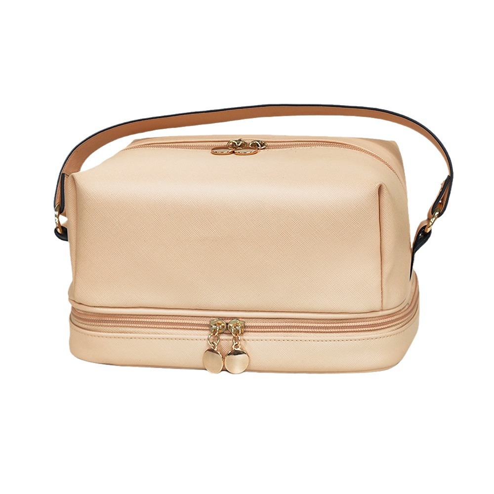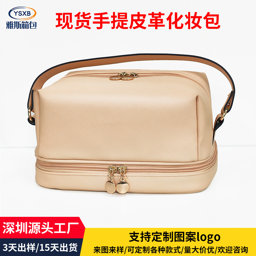 | nameOriginal | In stock pu leather portable cosmetic bag large capacity double-layer cosmetic storage bag portable travel waterproof wash bag |