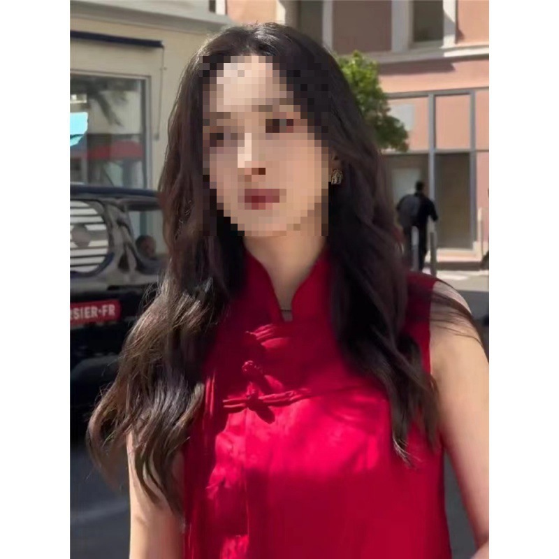 | nameOriginal | in stock Quick Hair Yang Mi French Street Shooting Stars Same Style New Chinese Jacquard Vest Antique Buckle Vest Women's Top |
