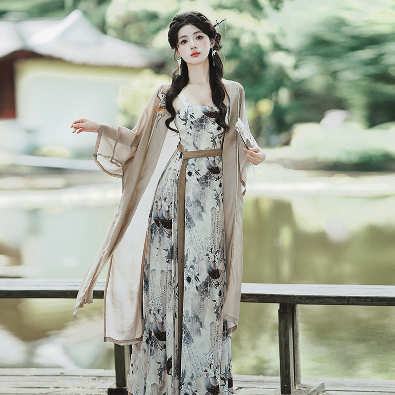 | nameOriginal | in stock Real Shot Ming-made Song Hanfu Pair Straight Sleeve New Chinese Style National Style Sling dress suit |