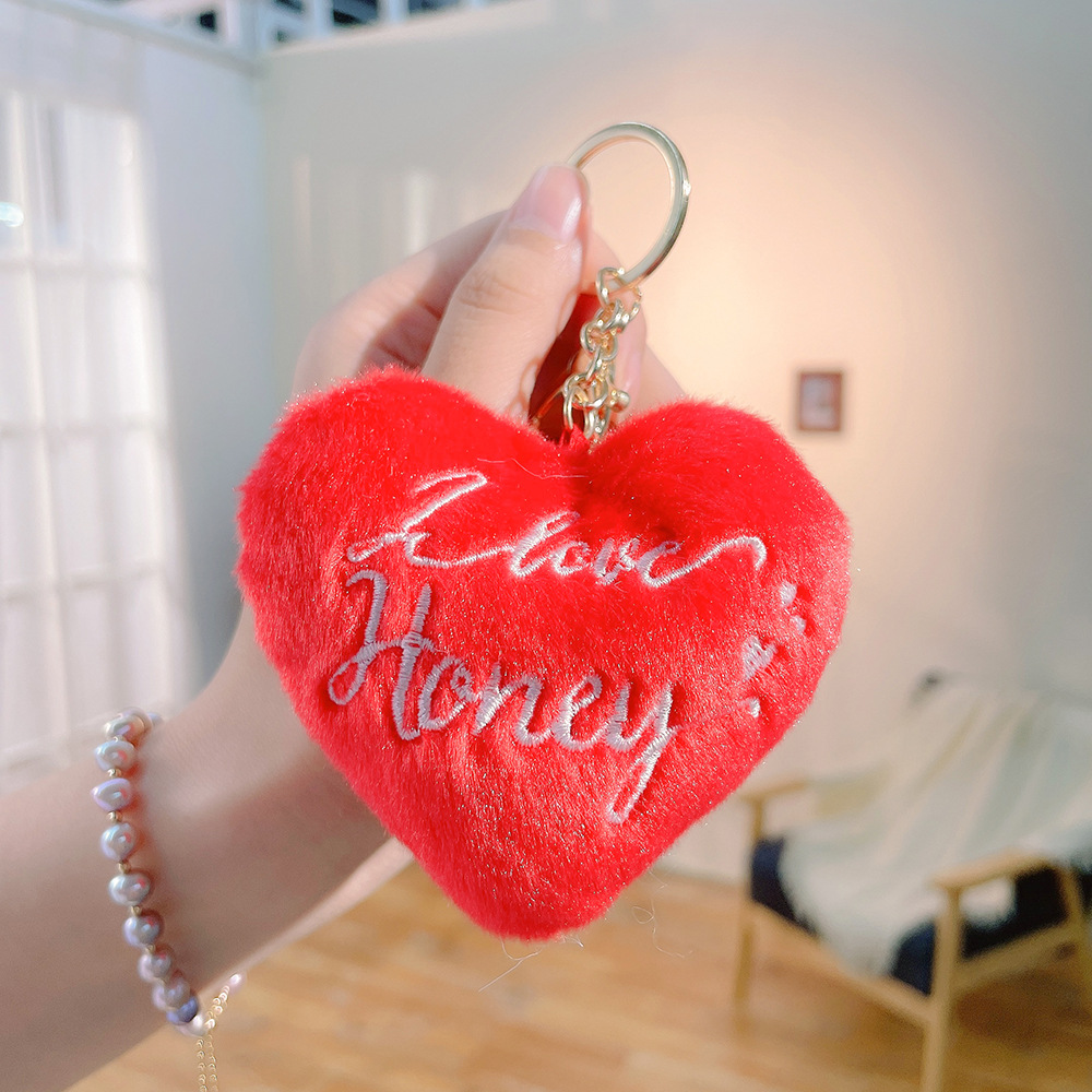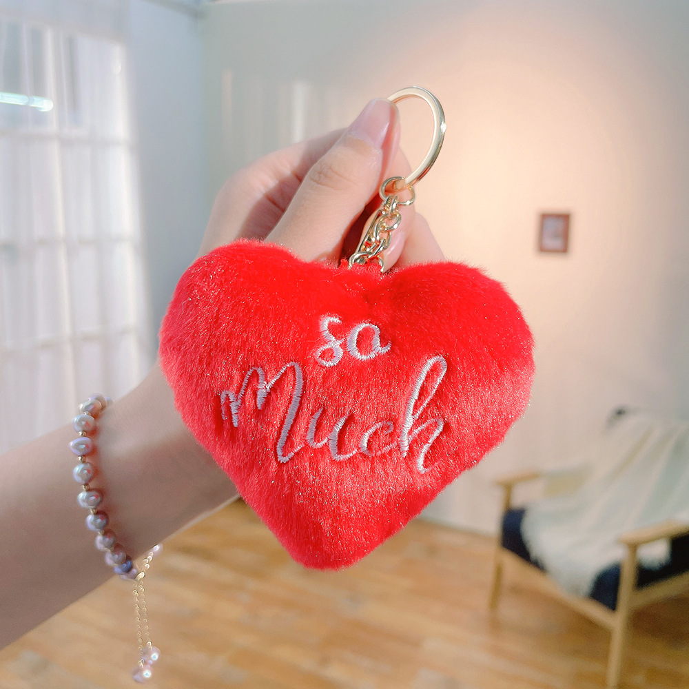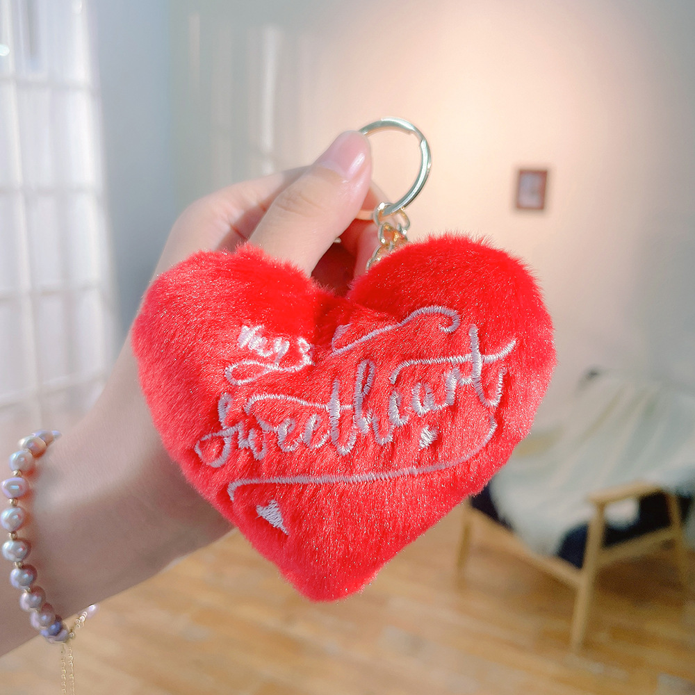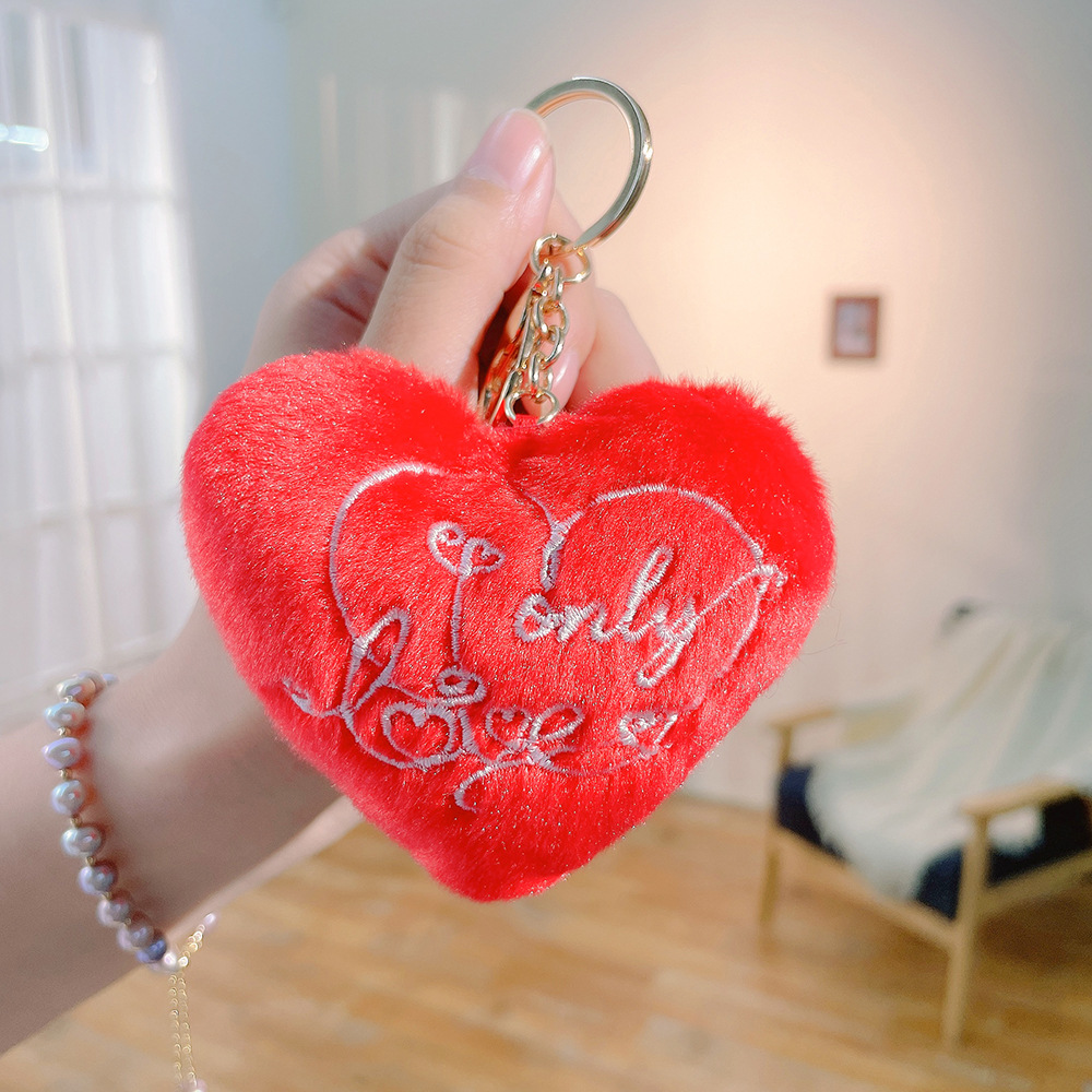 in stock red heart imitation rabbit fur ball pendant heart bag pendant love embroidery plush accessories factory direct sales