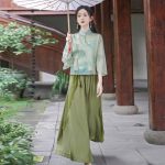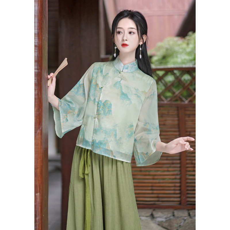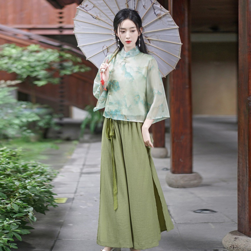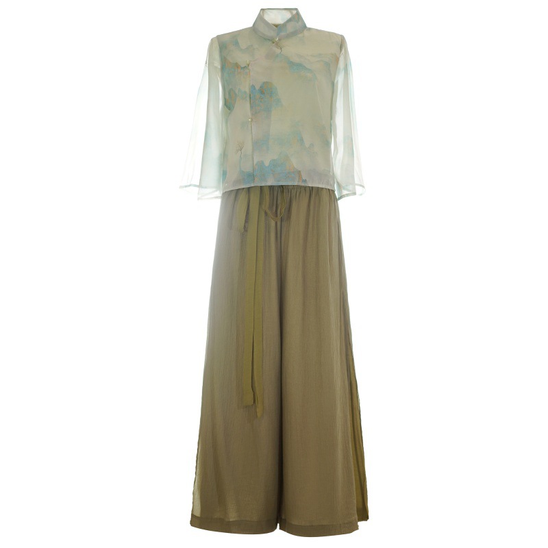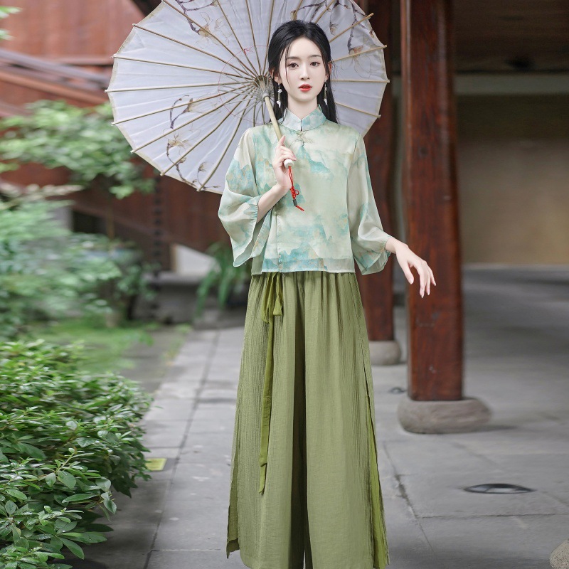 in stock Retro New Chinese Style Top Wide Leg Pants for Summer suit