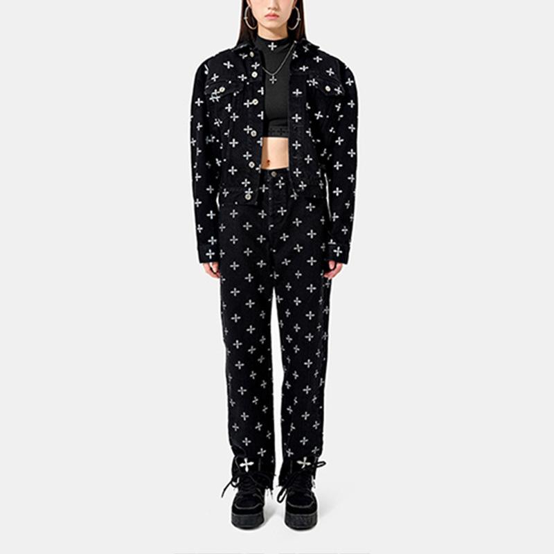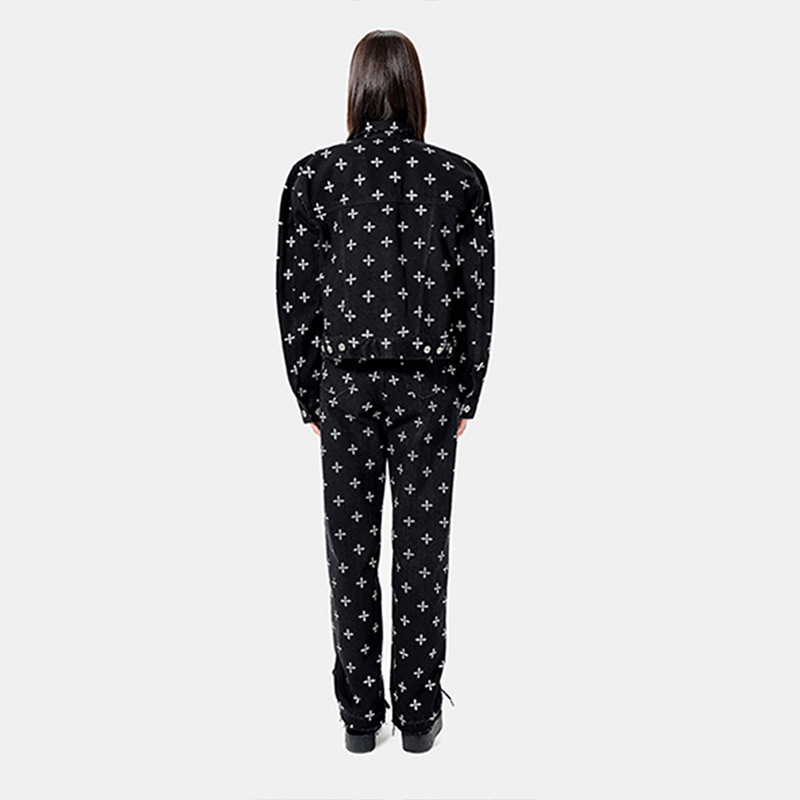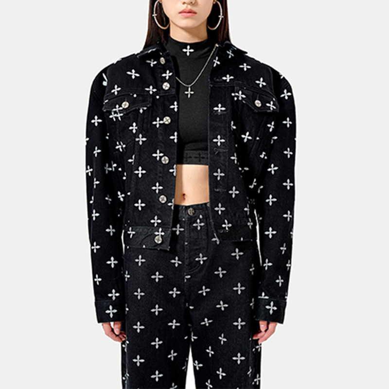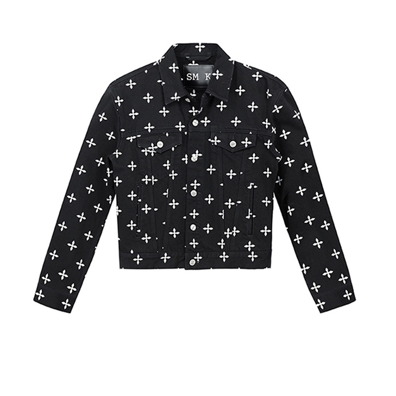 [In stock] Smink garden Denim jacket trousers cross flower full printed washed pure cotton casual jacket jacket