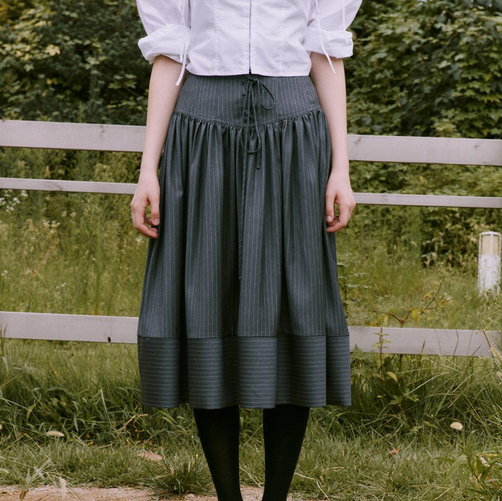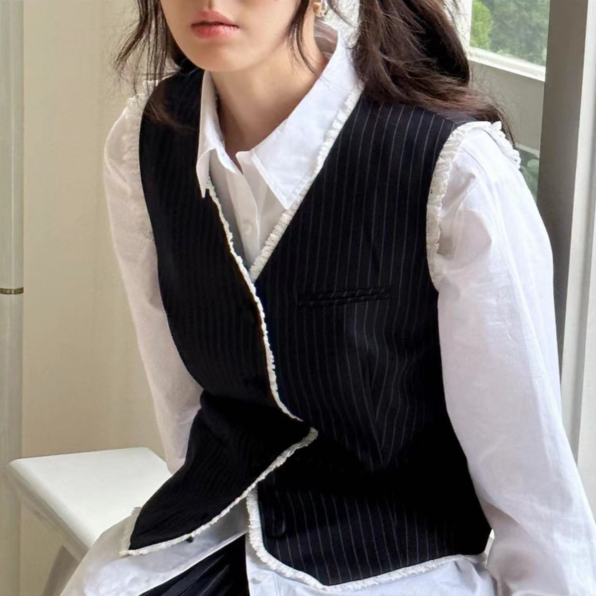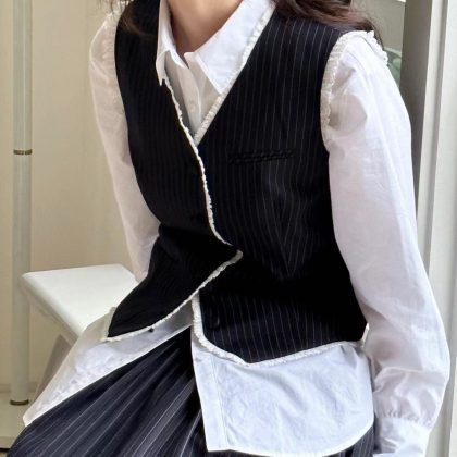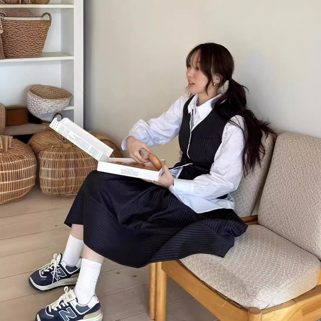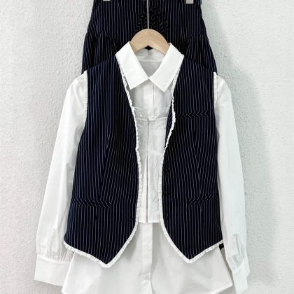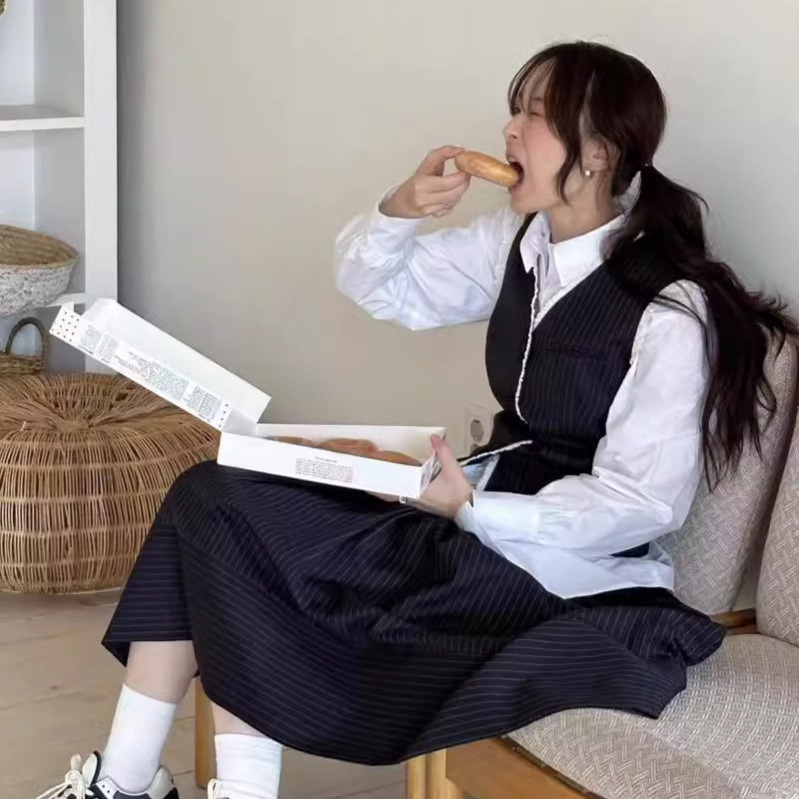 In stock spring new Korean style age-reducing elegant and capable fashionable slim-fit striped vest shirt skirt