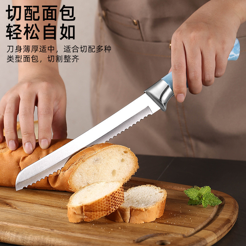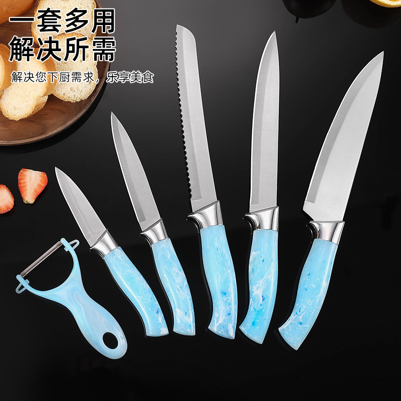 | nameOriginal | In stock suit knife set spray paint electroplating head chef knife household kitchen knife bread knife gift suit foreign trade knife |