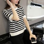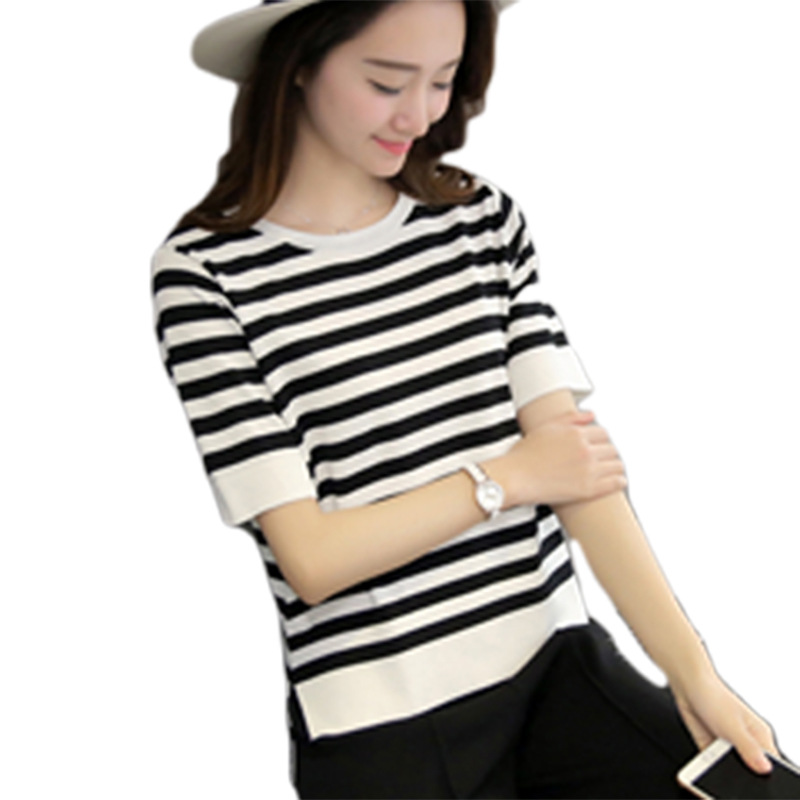 [In stock] summer loose plus size women’s clothing trendy Korean style bottoming shirt striped short sleeve split top color matching T-shirt