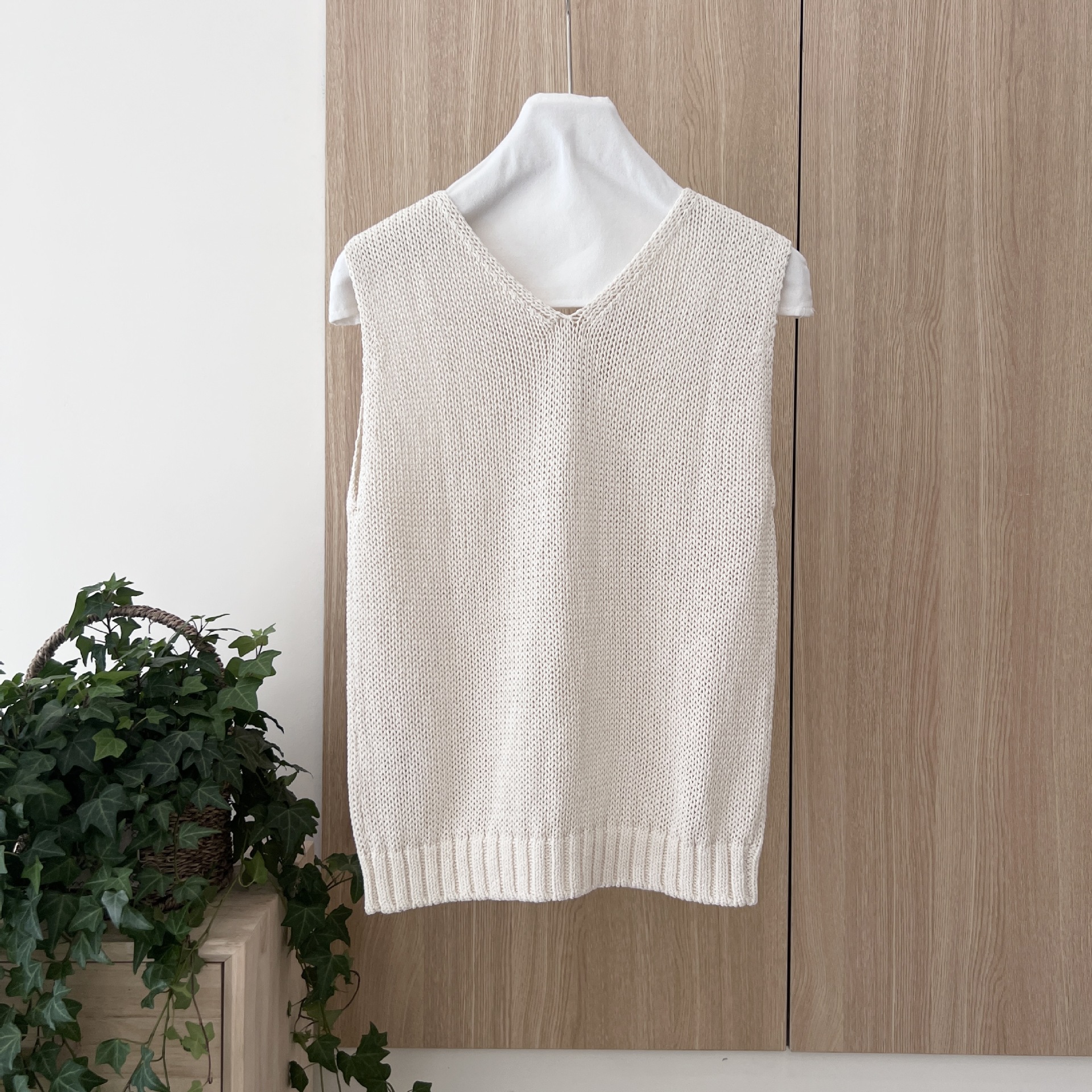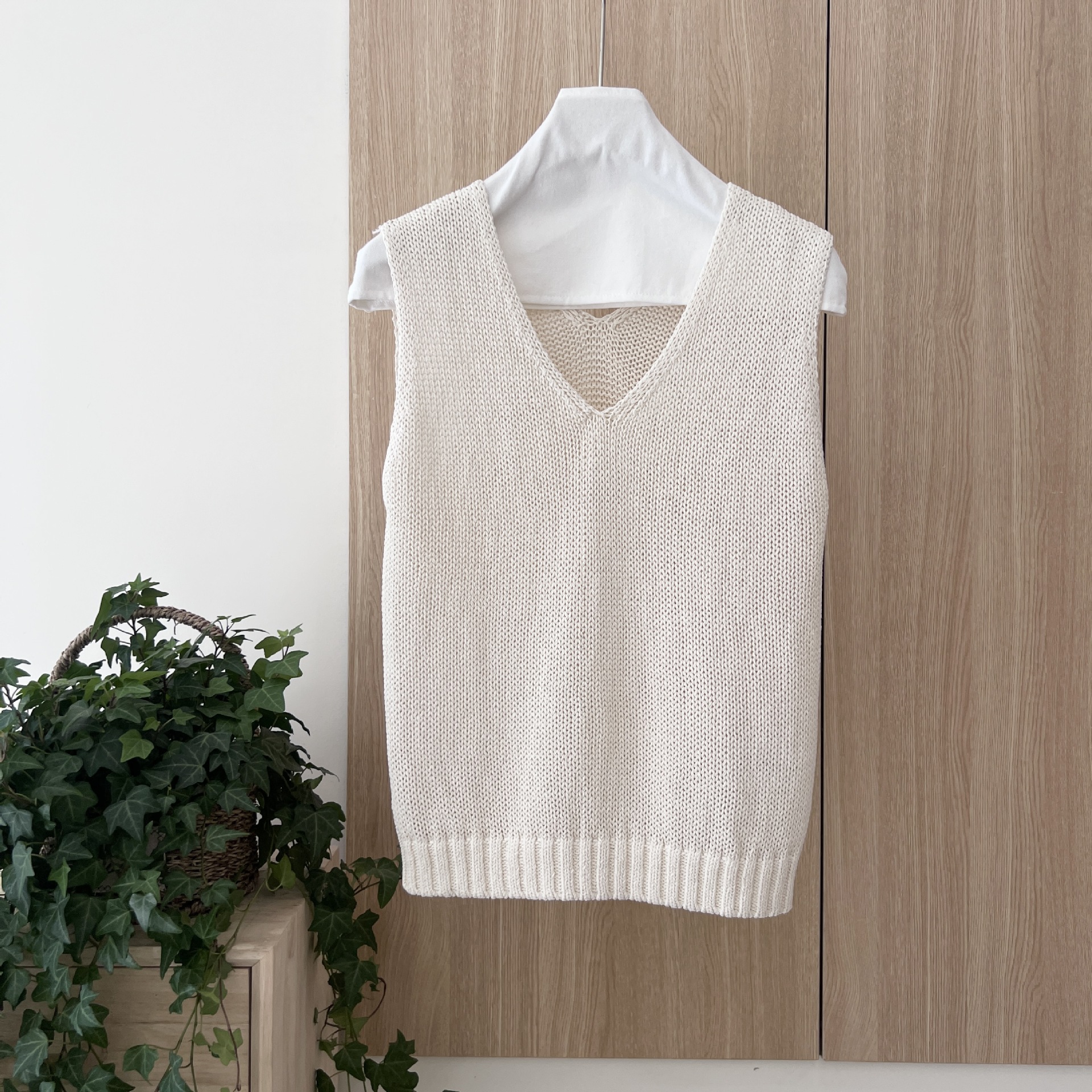 | nameOriginal | in stock summer new imported natural and paper cotton V-neck knitted vest 8907 |