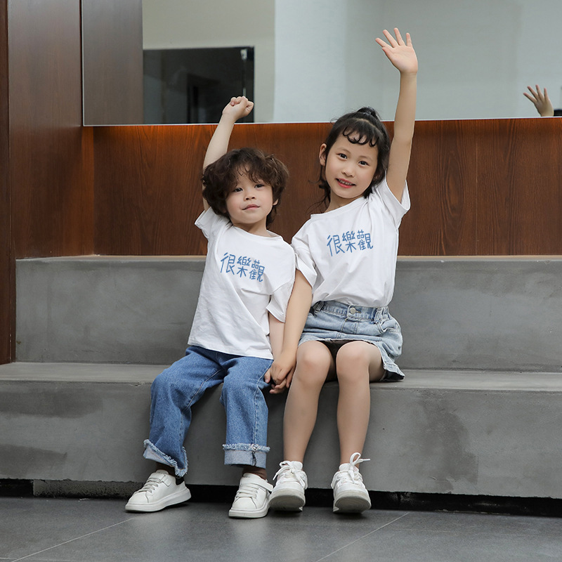 | nameOriginal | in stock] Summer Parent-Child Suit Mother-Daughter High-end T-Shirt New Family Suit Mother-Child Suit Children's Short Sleeve Parent-Child T-Shirt |