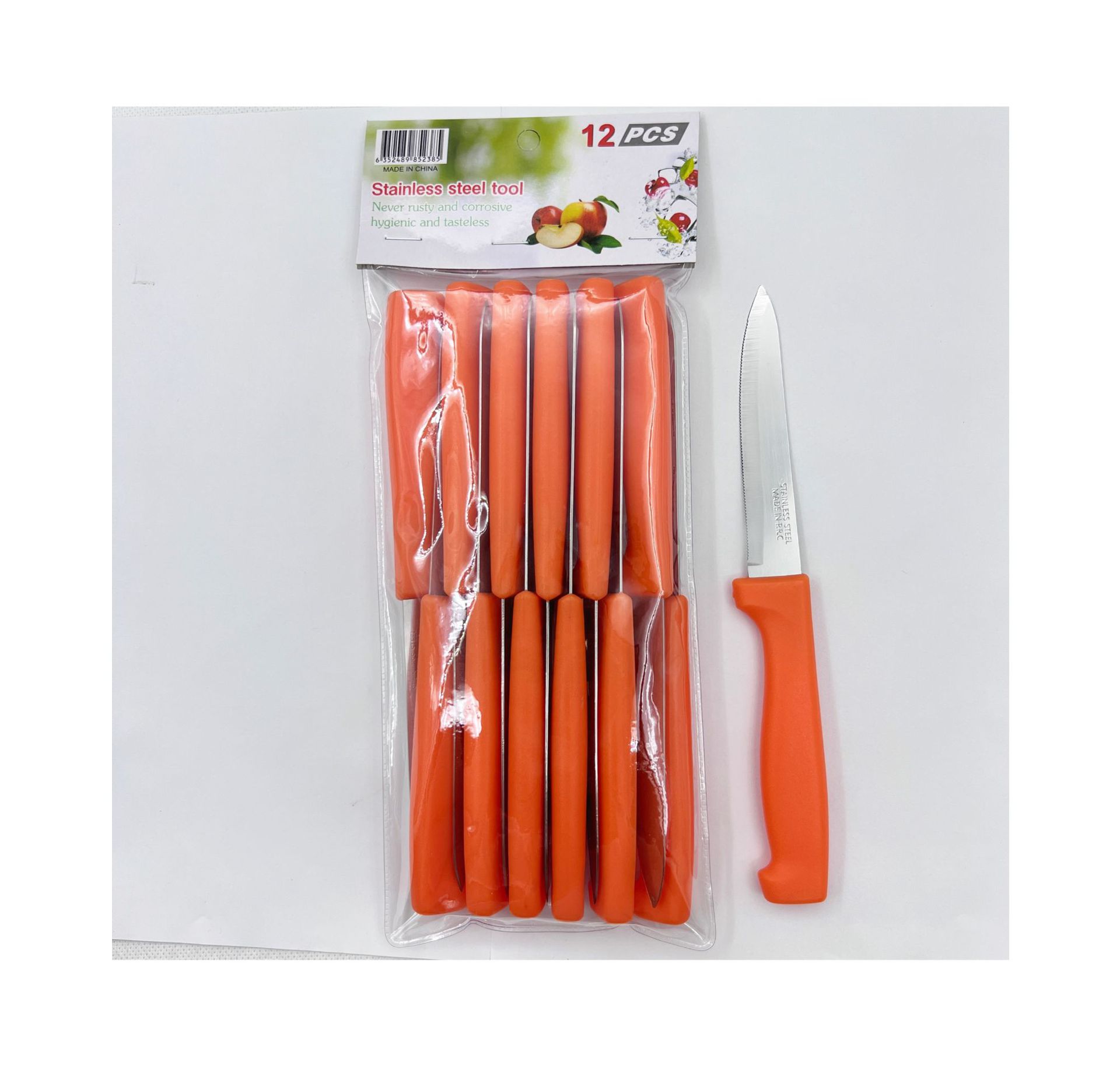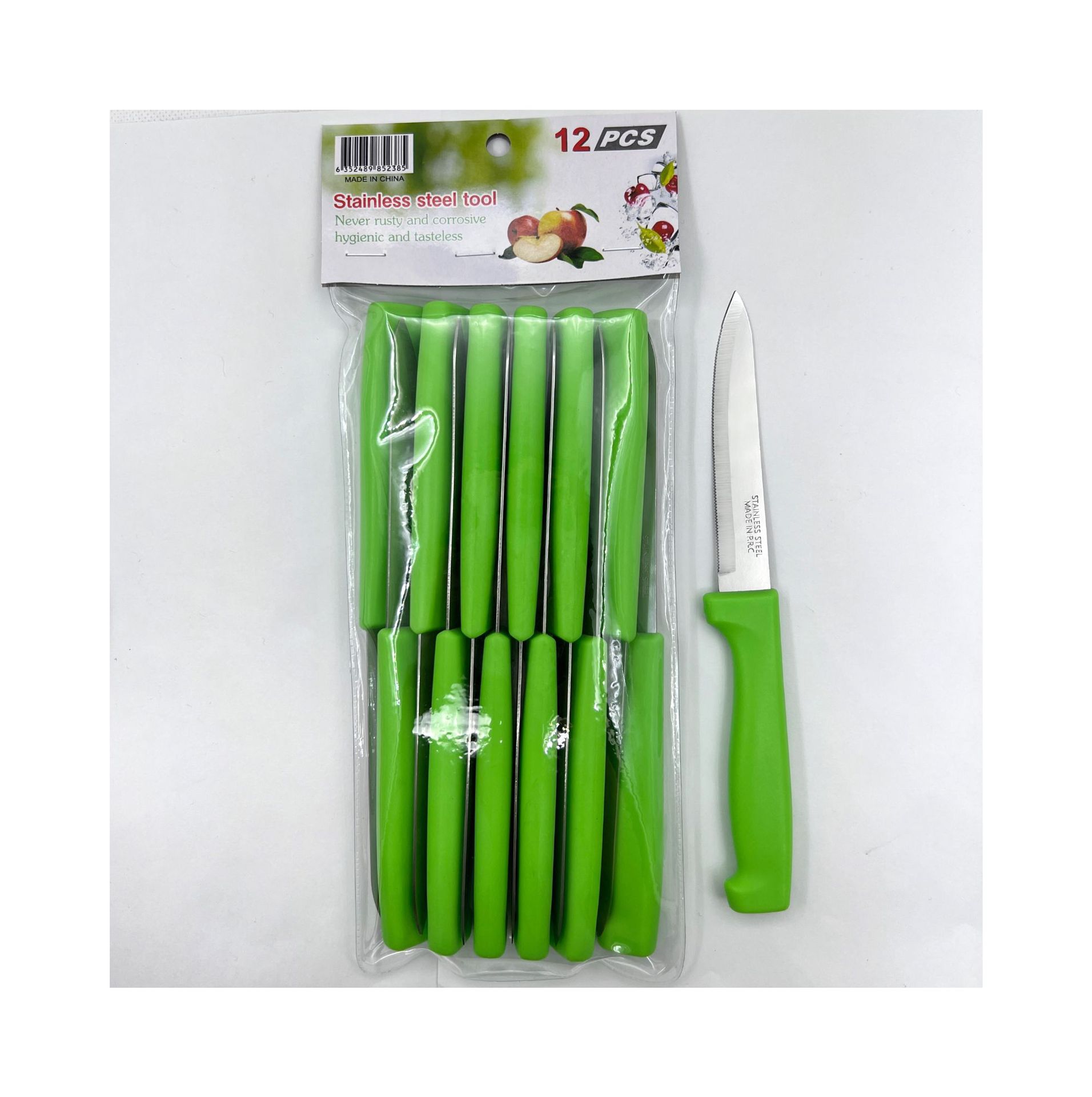 | nameOriginal | In stock supply 12 PCs suit steak knife stainless steel serrated knife plastic handle kitchen bread knife Western knife |