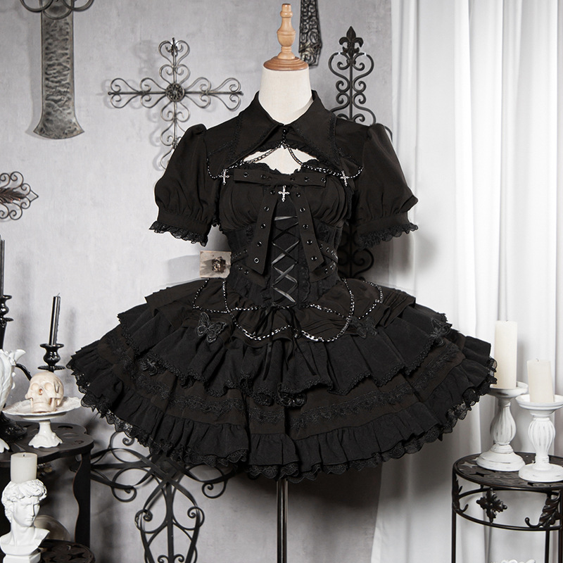 | nameOriginal | [in stock] The contract cross waistcoat leopard has a cat original lolita Gothic elegant bubble sleeve coat |