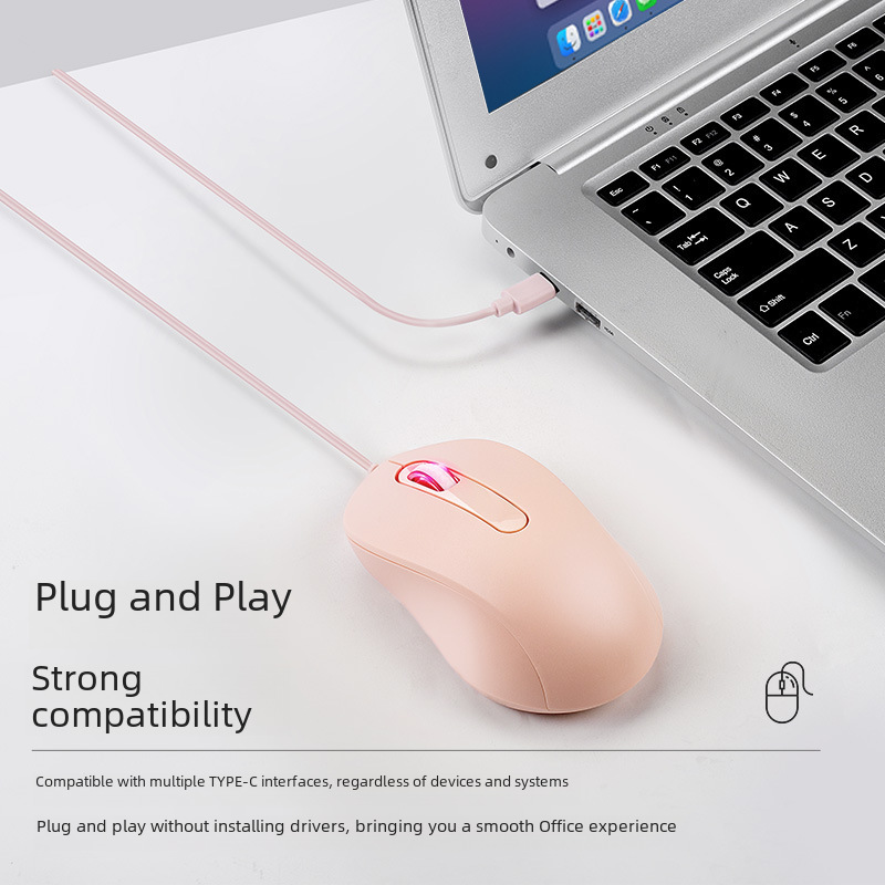 in stock Type c interface mute wired mouse for lightning girls laptop tablet phone