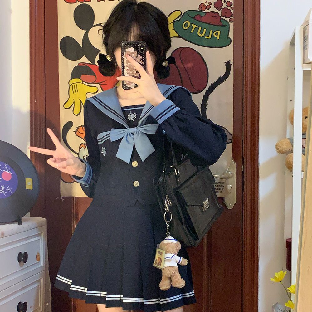 | nameOriginal | In stock wholesale nanzhizhong original genuine goods jk uniform sailor suit cyanotic color skirt School sense two-color embroidery suit |