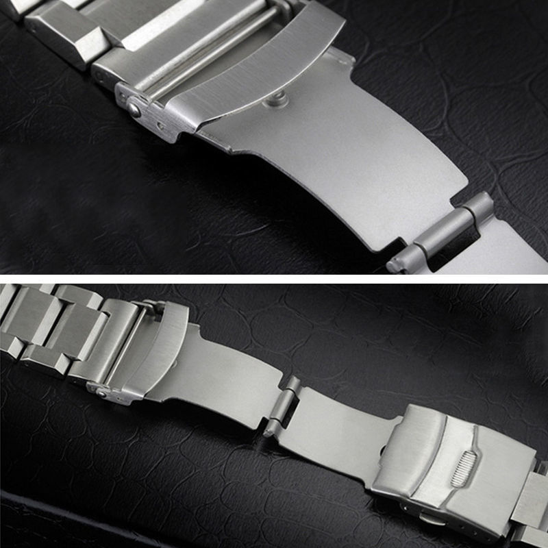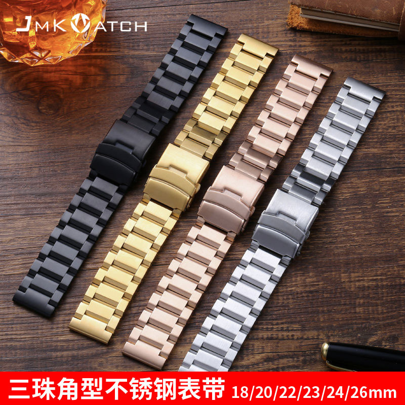 | nameOriginal | In stock wholesale stainless steel angle three beads solid trapezoid double safety buckle strap stainless steel strap 23mm25mm |