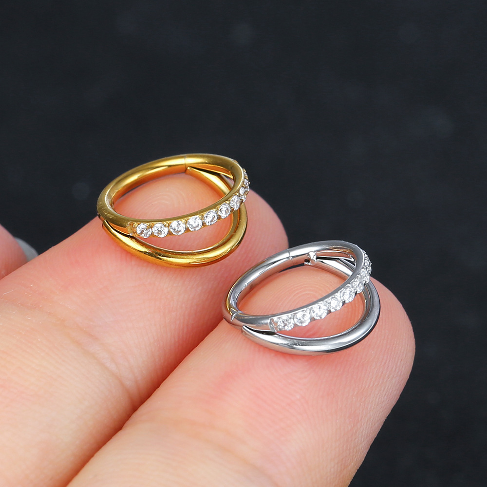 in stock wholesale stainless steel single beveled diamond nose ring seamless closure zircon nose ring earrings body piercing jewelry