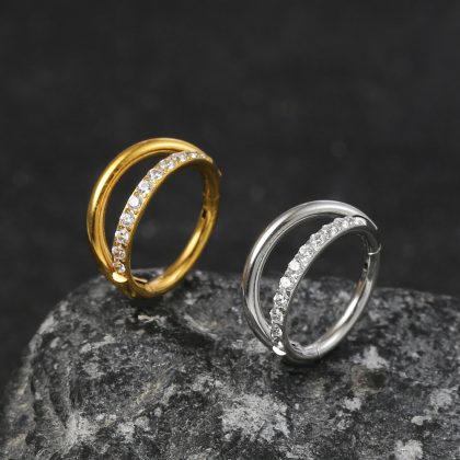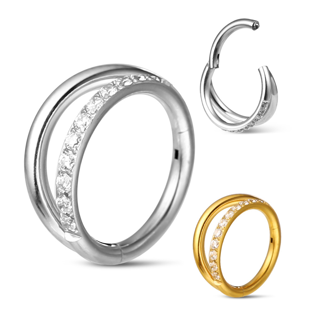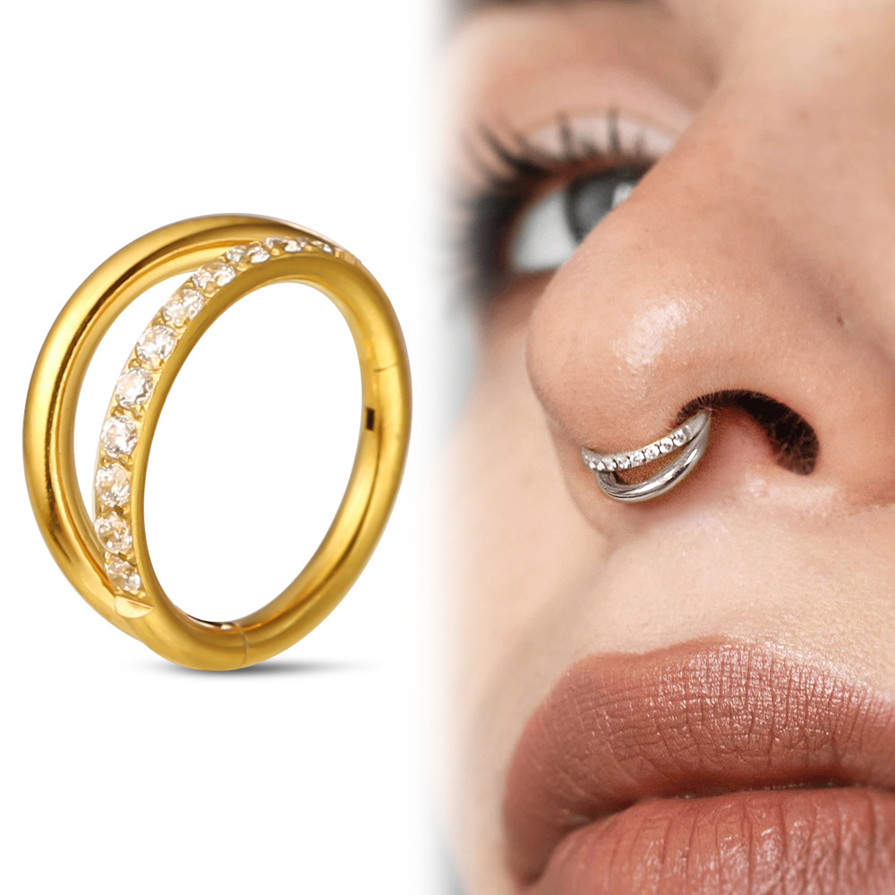in stock wholesale stainless steel single beveled diamond nose ring seamless closure zircon nose ring earrings body piercing jewelry