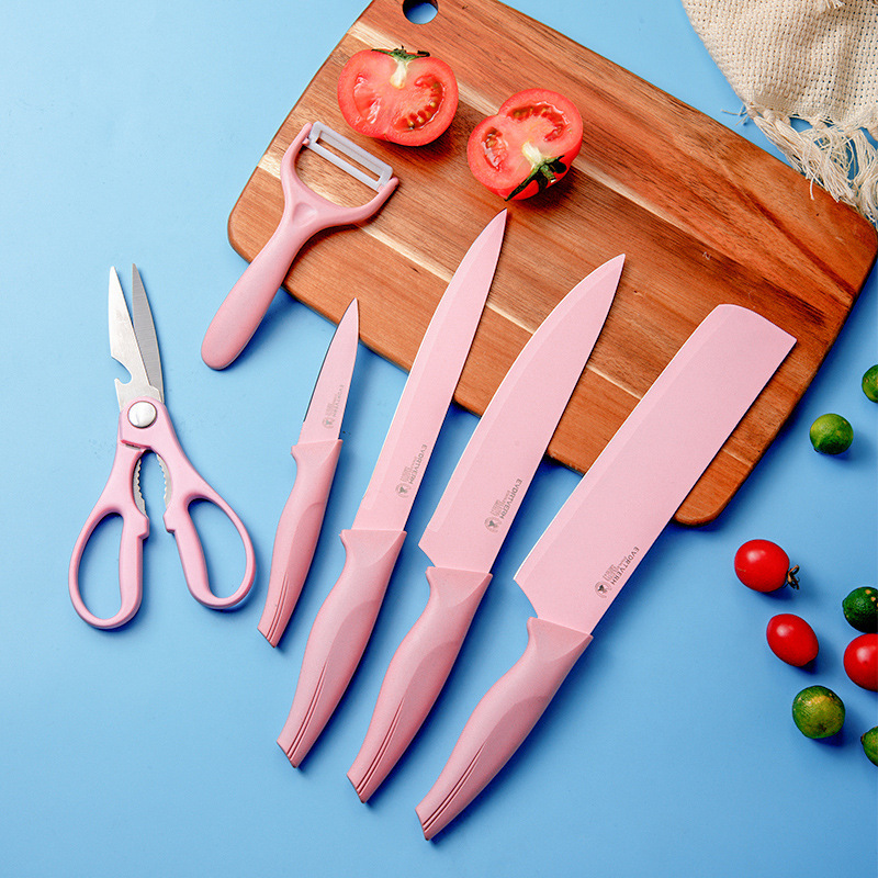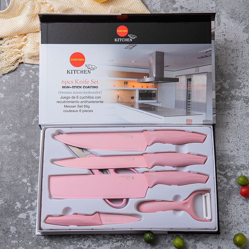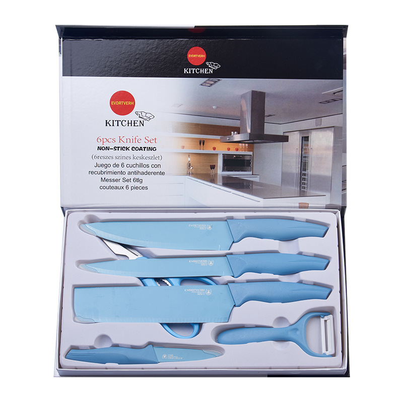 | nameOriginal | In stock Yangjiang kitchen knife suit double-layer non-stick coating color kitchen knife six-piece set gift knife set |