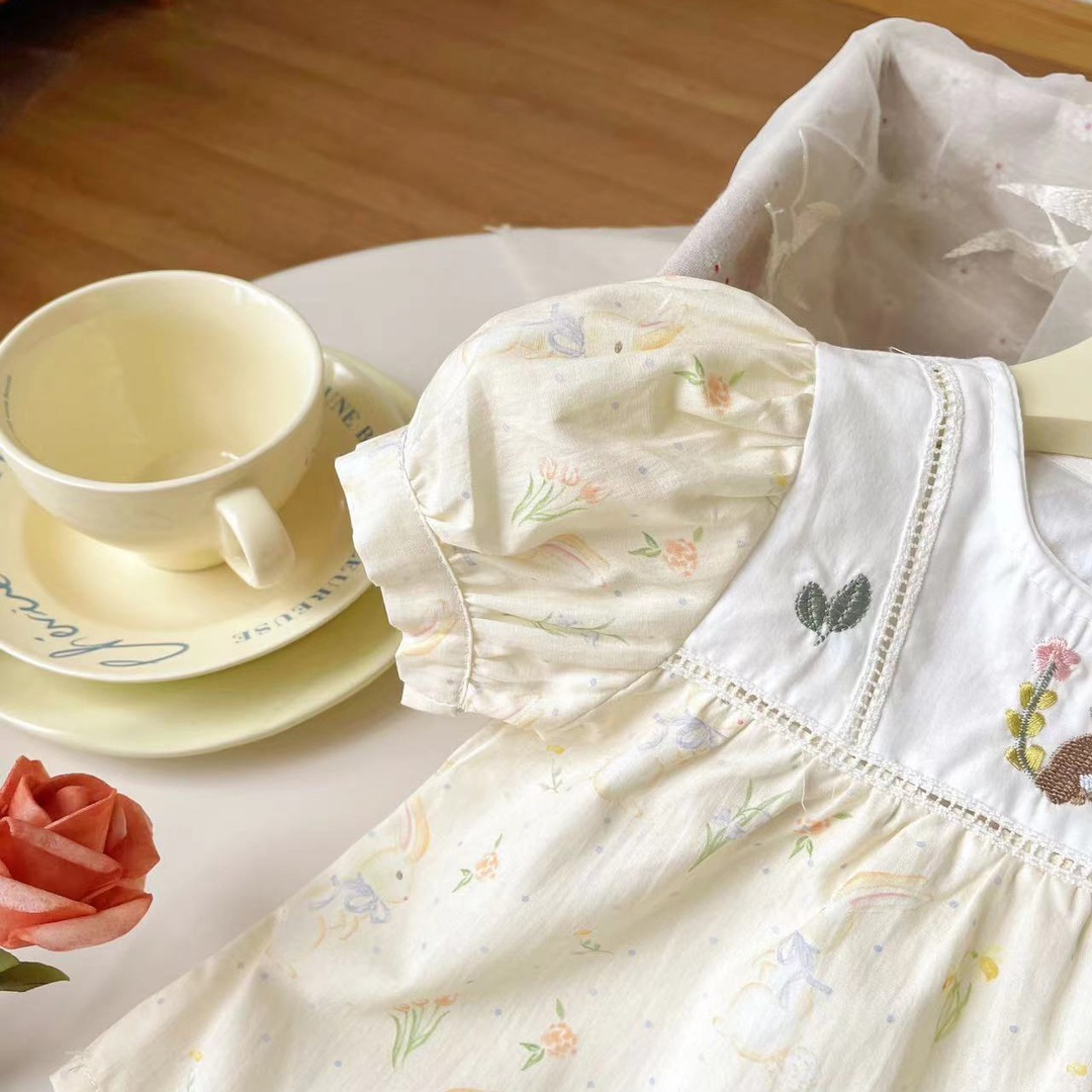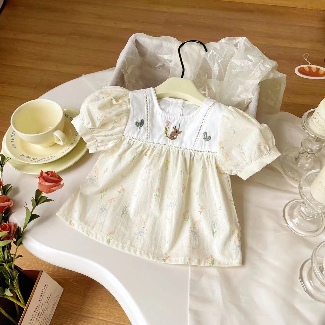 [in stock] ZD24X031 Summer Girls’ Shirt Short-sleeved Children’s Women’s Baby Foreign Style Doll Shirt Sweet and Fresh