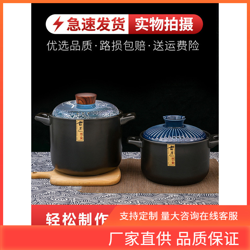INC0 ceramic casserole stew pot household high temperature resistant large capacity pot chicken soup porridge dry cooking casserole coal-fired gas Special