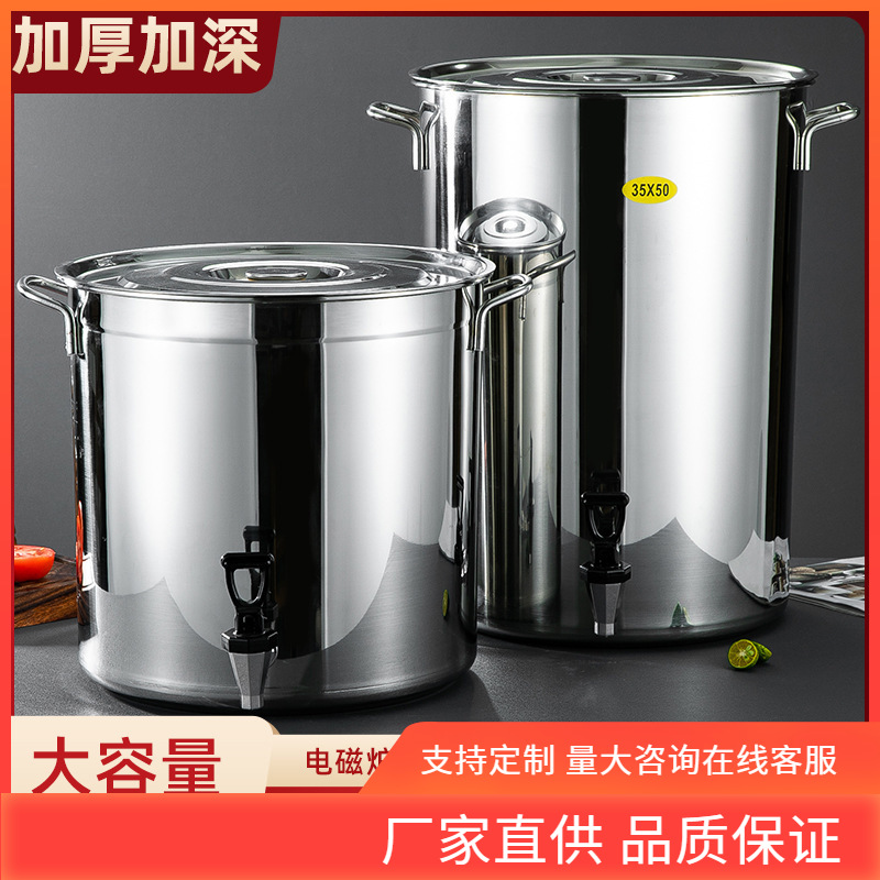 INC0 stainless steel barrel round barrel with lid commercial soup bucket boiling water Tea bucket boiling bucket cold tea bucket large capacity