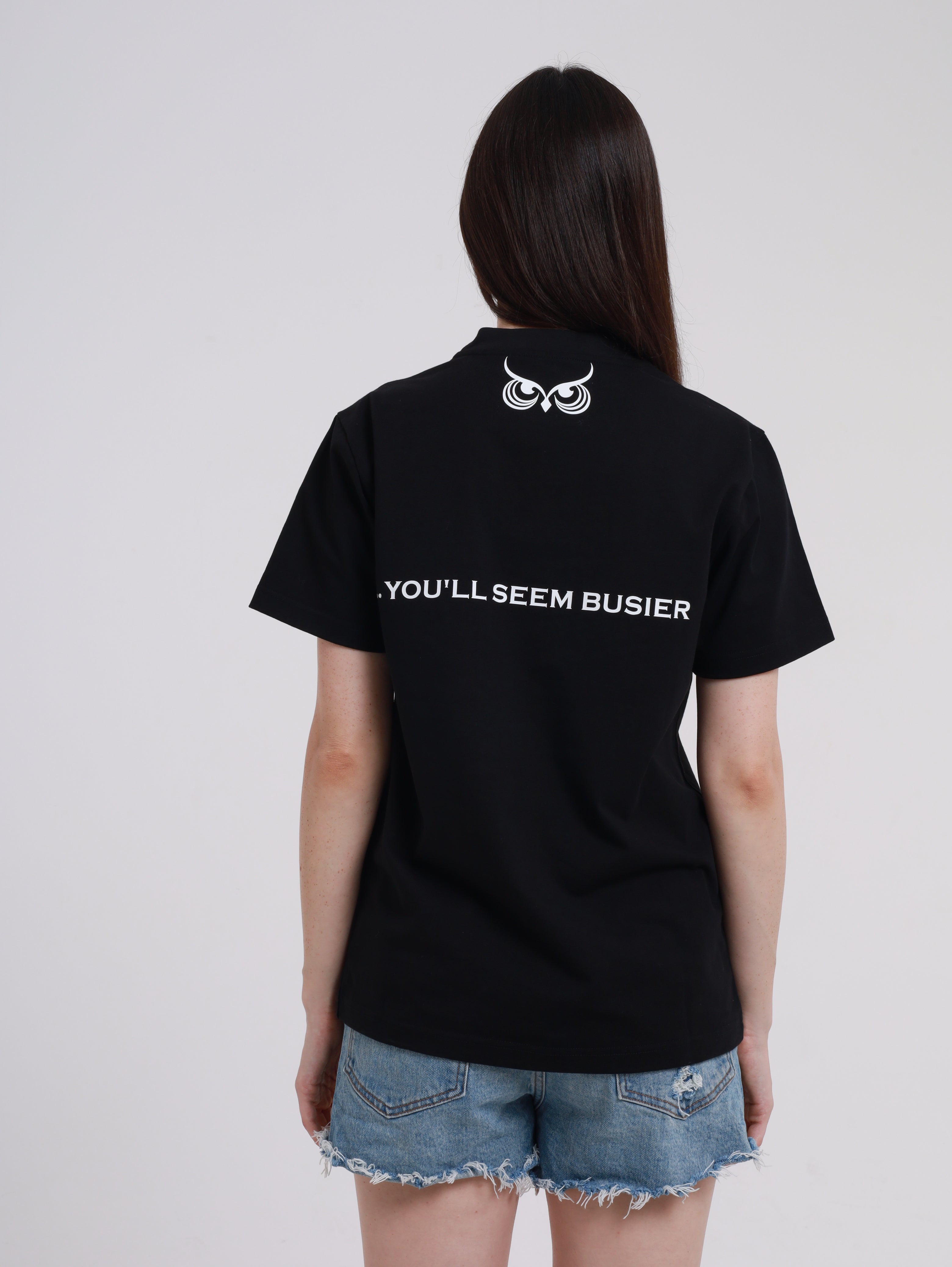 This product is available in a sleek black color and is made from 100% cotton fabric. It showcases an arrow logo on both the front and back for a stylish touch. This versatile piece can be effortlessly paired with either high-waisted or low-waisted bottoms to create a chic and fashionable outfit. It is proudly made in the UAE.