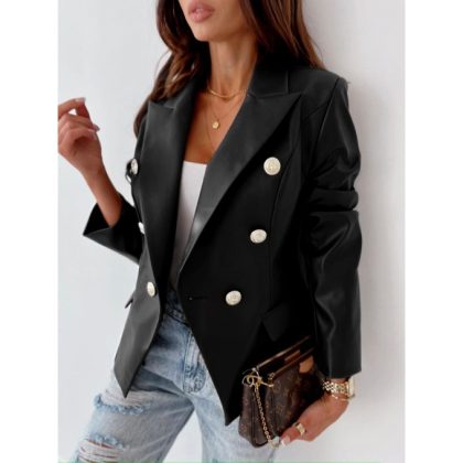 | nameOriginal | Independent station AliExpress autumn and winter European and American new long-sleeved double-breasted fashion PU leather suit jacket |