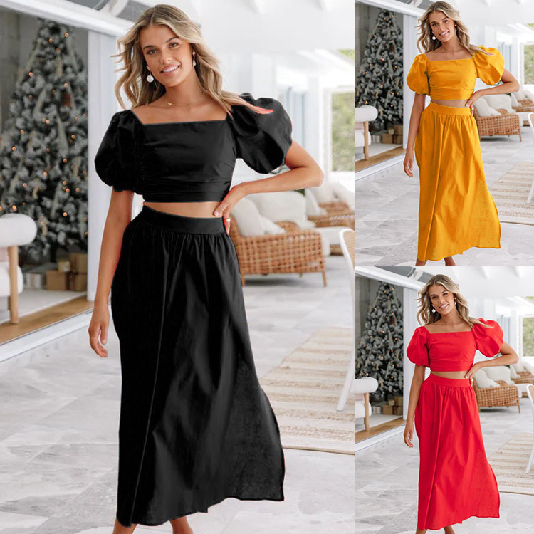 | nameOriginal | Independent station cross-border foreign trade women's clothing 2023 spring and summer New Lantern sleeve square collar top split dress two-piece suit |