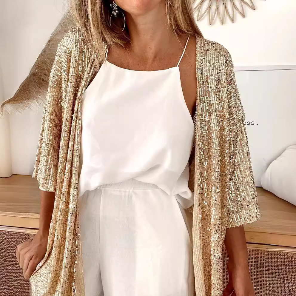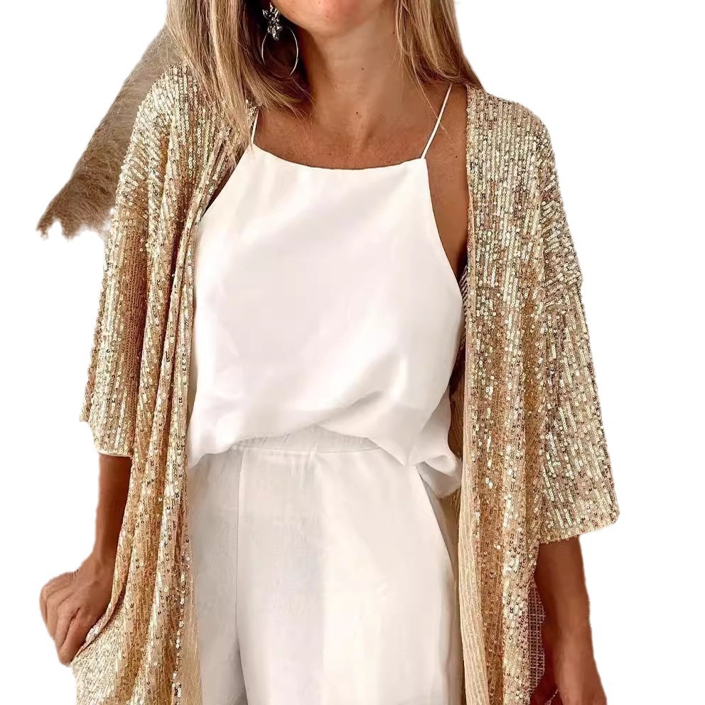 | nameOriginal | Independent station direct sales cross-border European and American 2024 autumn new women's sequined plus size loose top solid color coat |