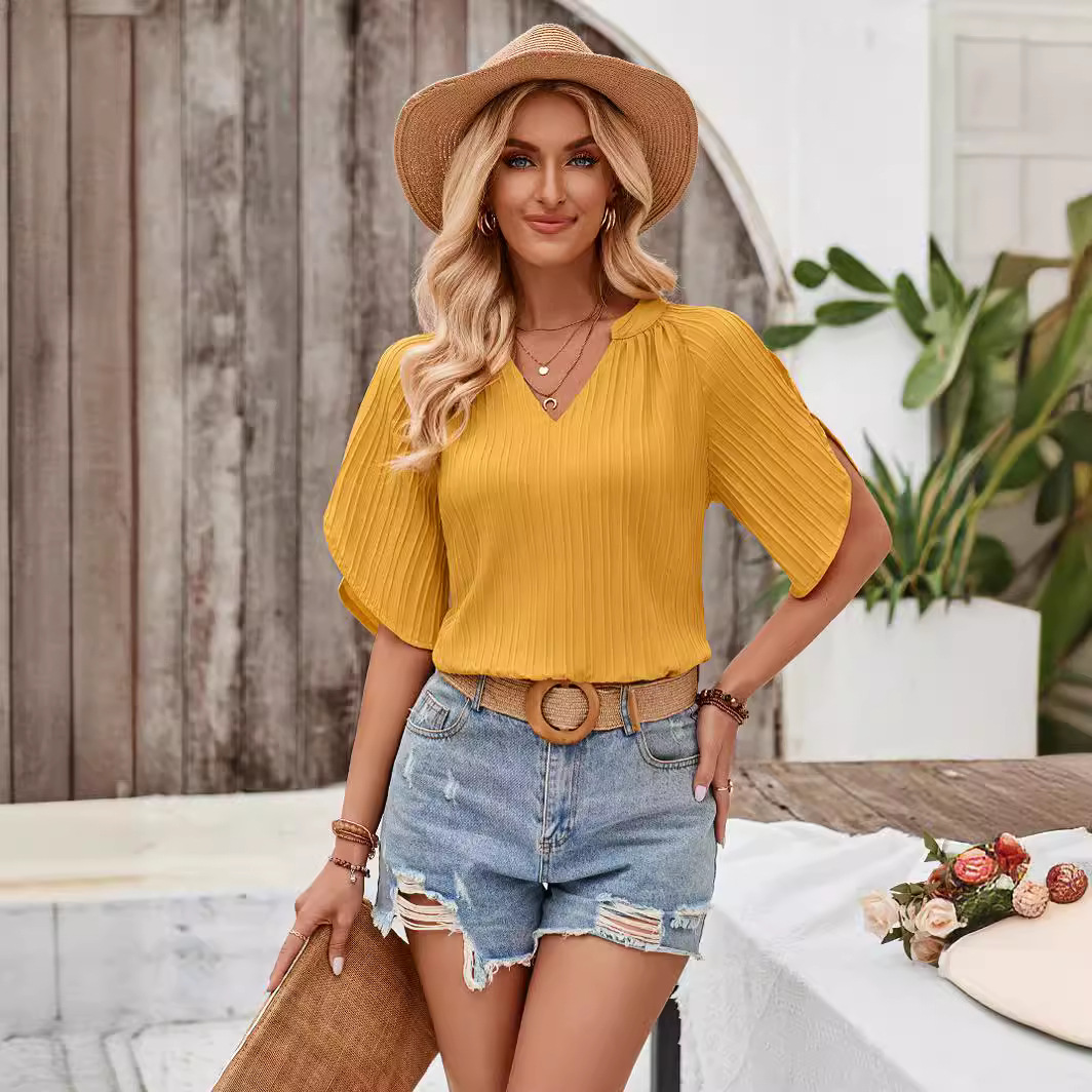 | nameOriginal | Independent station summer new women's clothing European and American hot sale cross-border casual solid color V-neck slim hollow out trend women's top |