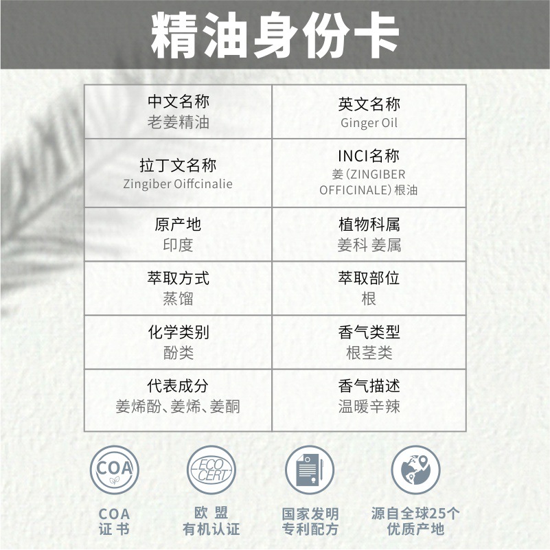 | nameOriginal | India Imported Ginger Essential Oil Cold Warming Beauty Salon Hair Care Open Back Heating Massage Oil Organic Single Essential Oil |