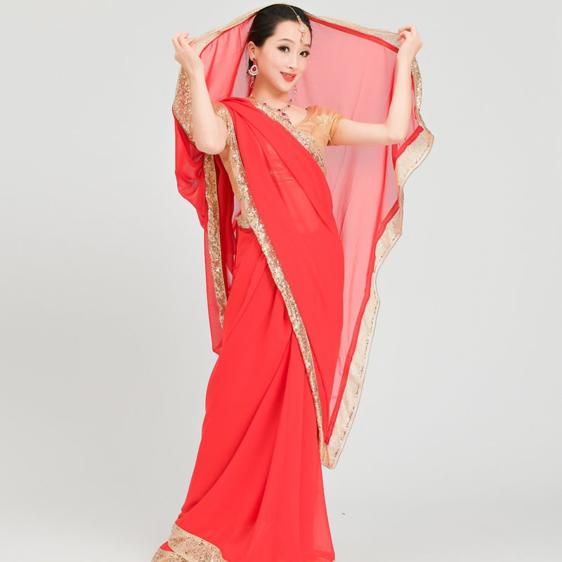 Indian Sari Skirt Scenic Dancer Red Orange Purple Black White Petticoat Dance Belly Dance Photo Dress Women's Dress