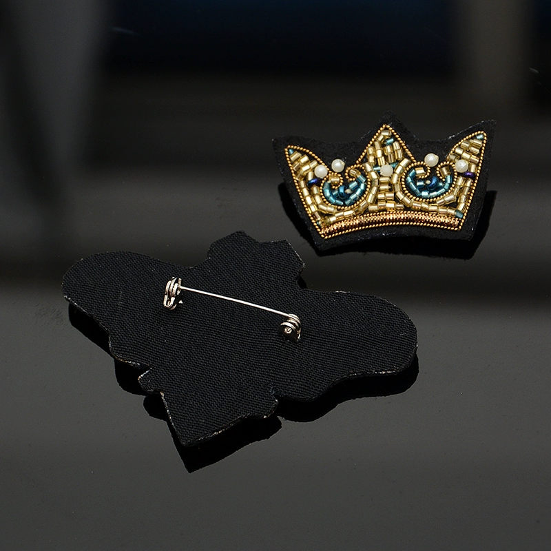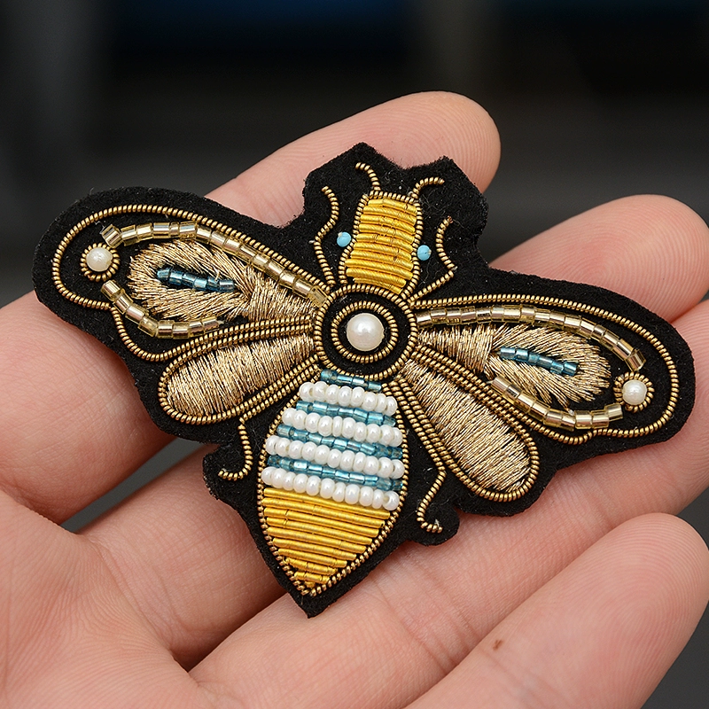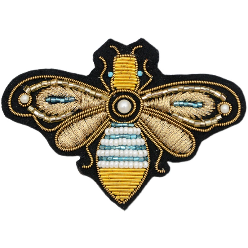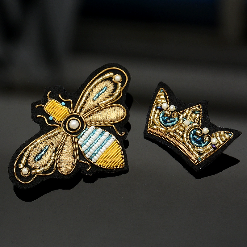 | nameOriginal | Indian silk hand-embroidered gold crown bee cartoon brooch small safety pin fixed clothing accessories badge |