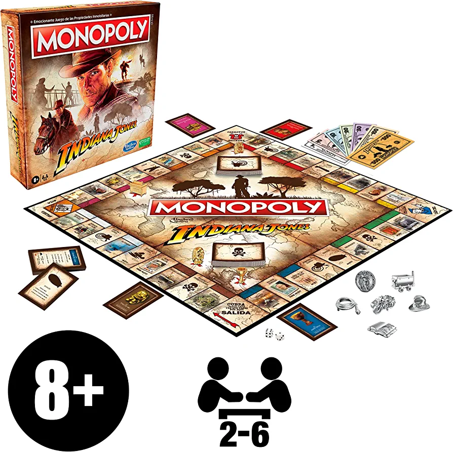 | nameOriginal | Hasbro Gaming Monopoly Indiana Jones Game, Inspired by The Indiana Jones Movies, Board Game for 2-6 Players, for Kids Ages 8 and Up |