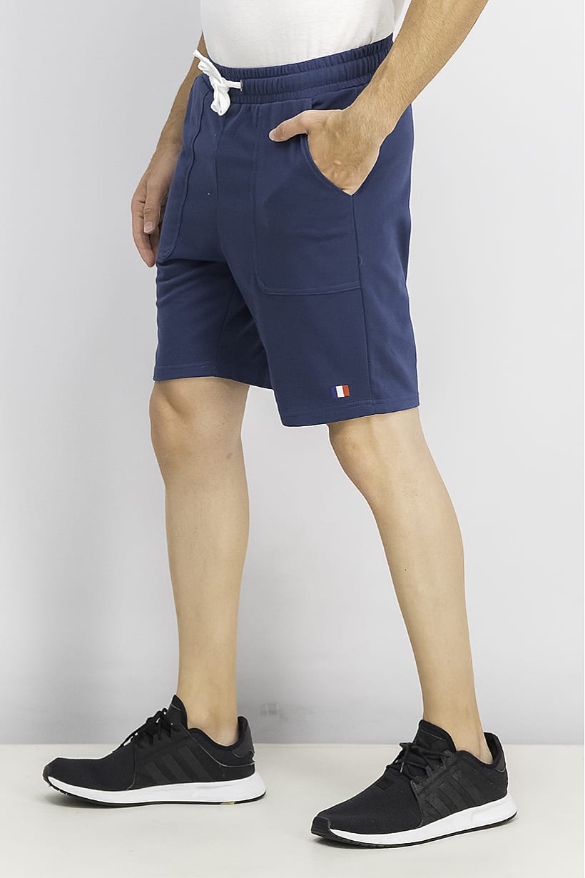 Care : Machine washable, Fit : Regular fit, No of pockets : 2, Size shown : International, Stretch Type : Stretchable, Type of Short : Basic short, Bottom Closure : Drawstring, Disclaimer : Product color may slightly vary due to photographic lighting sources or your monitor settings., Fabrics : 50% Cotton, 50% Polyester, Occasion : Casual, Pattern & Print : Plain/Solid, Color Family : Blue,