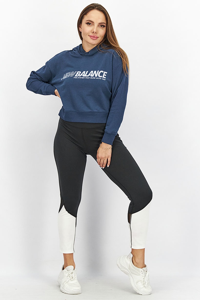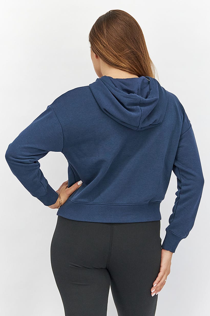 Care : Machine washable, Fit : Sportswear Fit, Ideal For : Women, Size shown : US, Sleeve Length : Long Sleeve, Thickness : Medium, Type of Sport : Training, Types of Hem : Ribbed hem, Types of Neckline & Collar : Hood with drawstrings, Types of Sleeve : Longsleeve, Disclaimer : Product color may slightly vary due to photographic lighting sources or your monitor settings., Fabrics : 64% Cotton, 36% Polyester, Pattern & Print : Graphic print, Sportswear Type : Hoodies, Types of Closures : Pullover, Color Family : Navy Blue, Occasion : Sport,