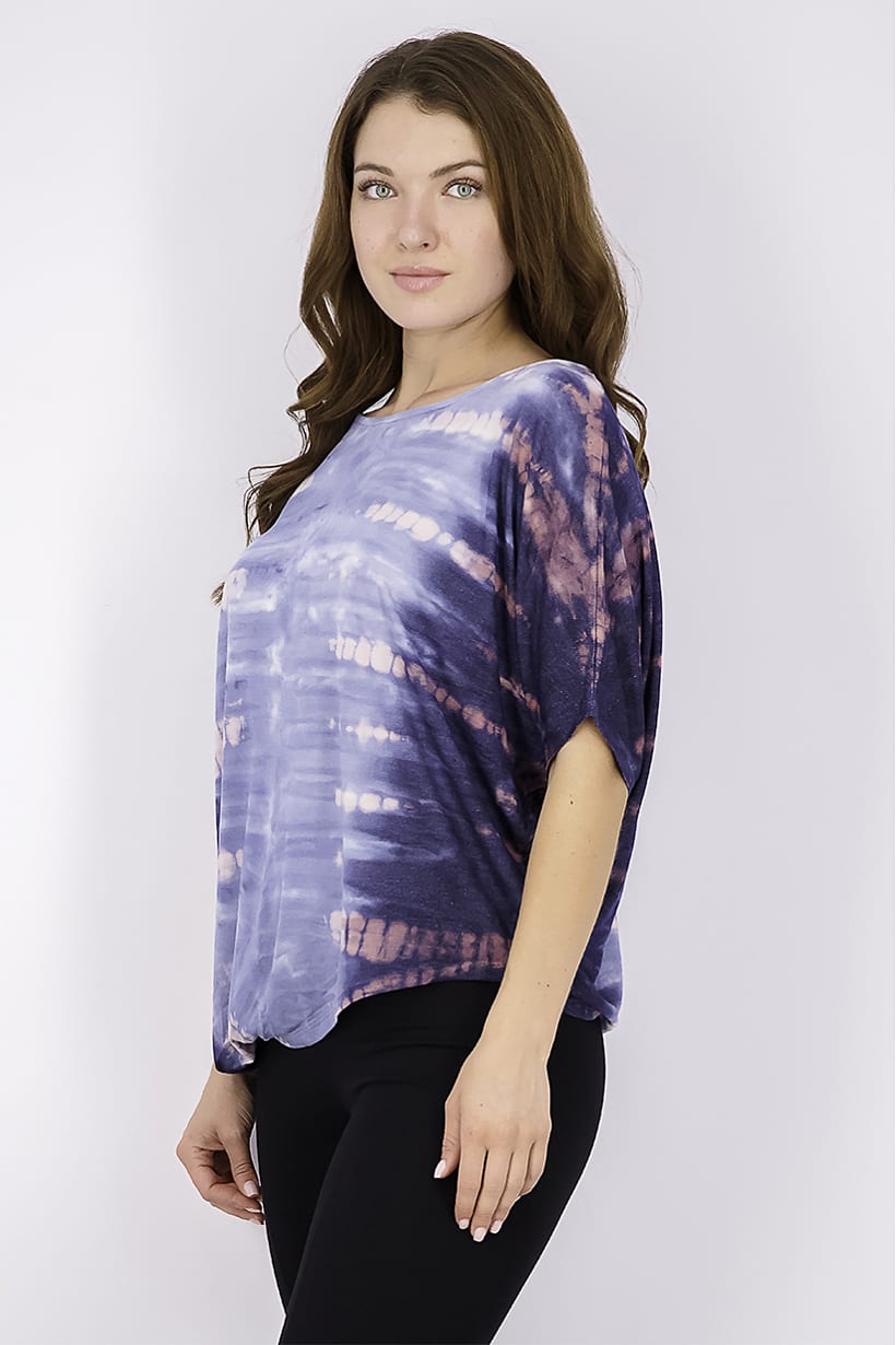 This sporty t-shirt is easy to care for as it is machine washable. It has a sportswear fit and is available in international sizes. The fabric is light and comfortable, making it perfect for training. The hem is straight and the neckline is a classic crew style. Please note that the product color may vary slightly due to lighting or monitor settings. The t-shirt is made from a blend of 50% Rayon and 50% Polyester and features a trendy tie-dye pattern. It is a pullover style with no closures and comes in a blue color family.