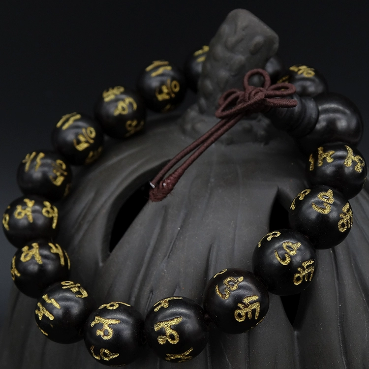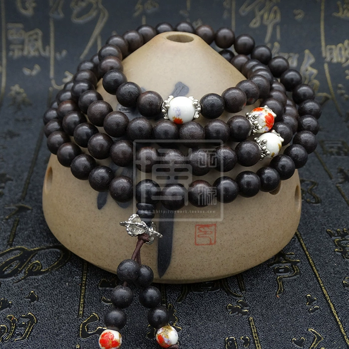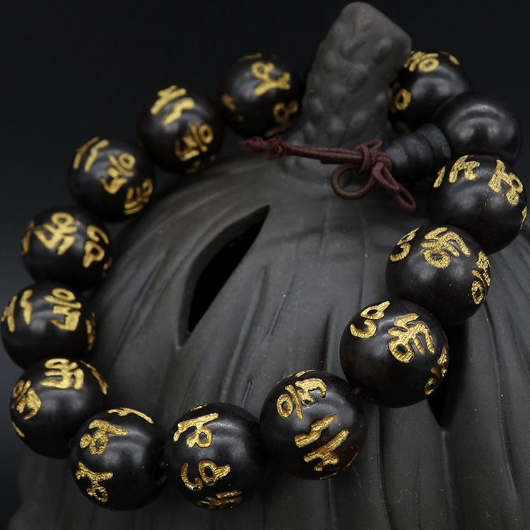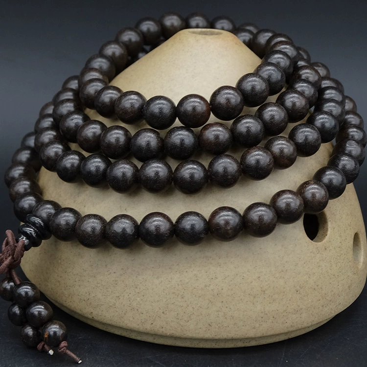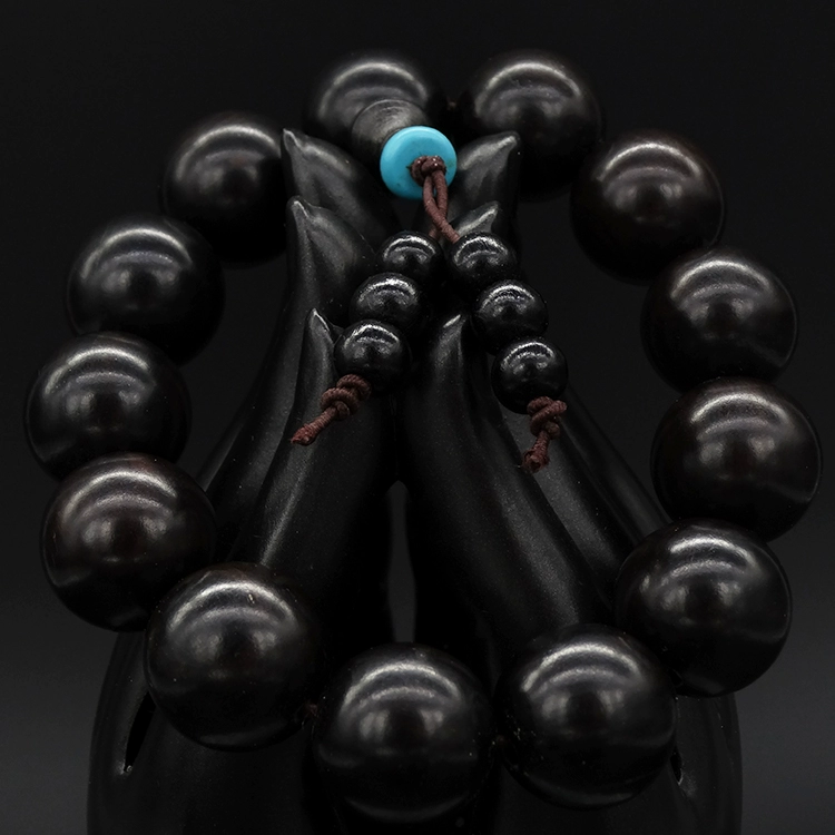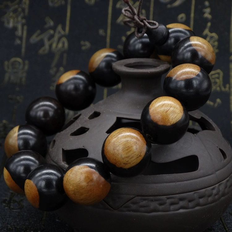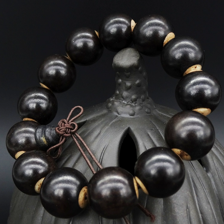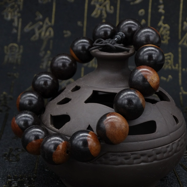 Indonesian genuine black sandalwood yin and yang wood Buddha beads bracelet hand string beads sandalwood Buddha beads 15MM sandalwood rosary beads cultural toy