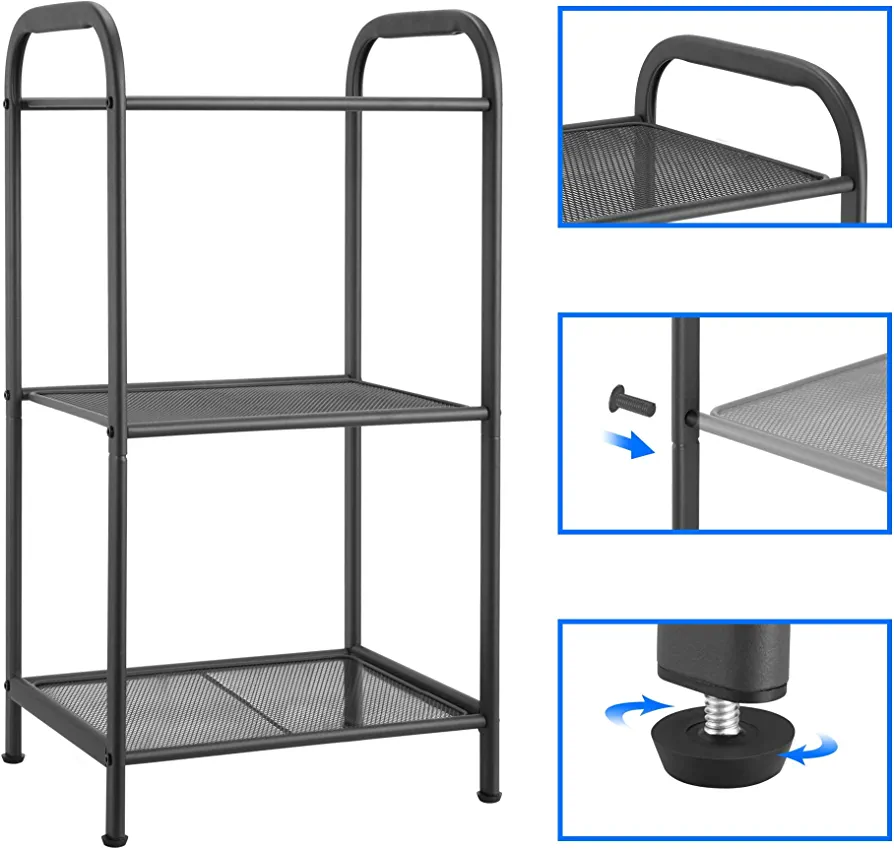 Wide Usage: This rack can be used to store toiletries, towels, sundries, decorations, small furnishings, shoes, books, plants, spices and small appliances in the bathroom, living room, balcony, kitchen, etc.
