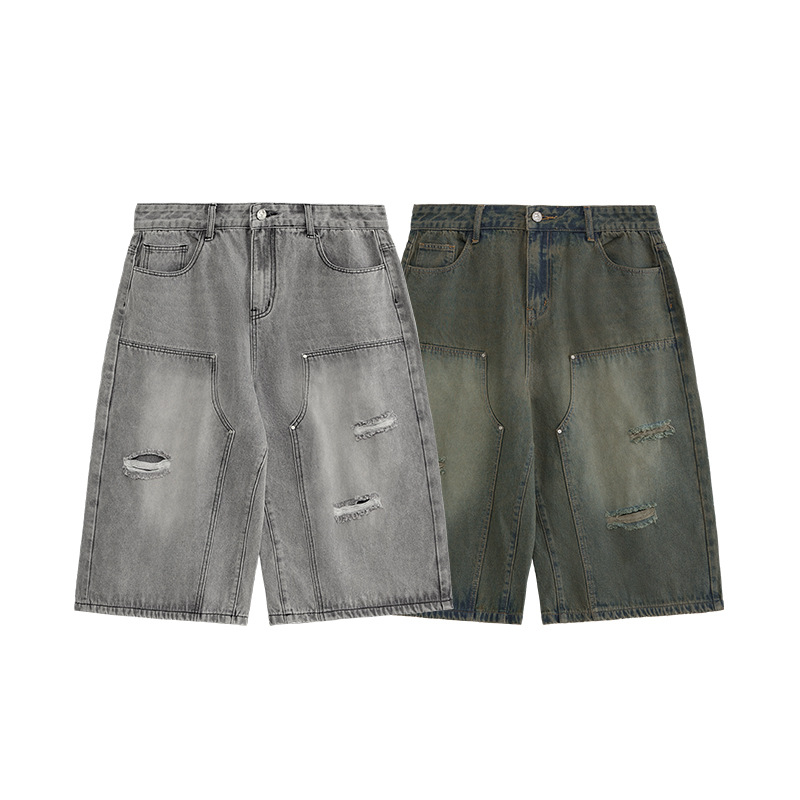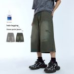 | nameOriginal | INF Men's, Ripped Logging Seven-point Jeans 2024 Spring/Summer New Fashion Brand Street Personality Straight Shorts Men |