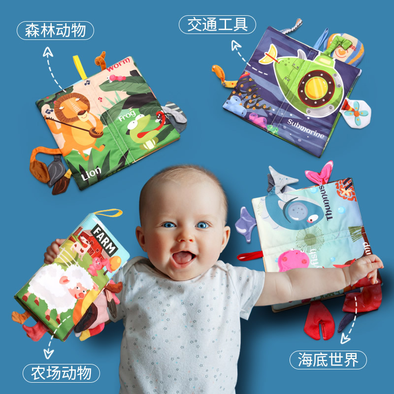 Infant cloth book 0-3 years old enlightenment early education three-dimensional tail cloth book ring paper tear baby educational toy book