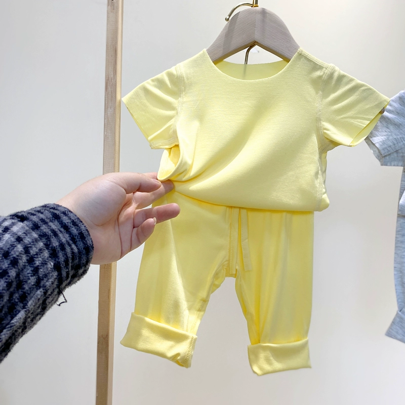 | nameOriginal | Infant modal baby boneless short-sleeved pants summer suit for men and women baby thin air-conditioned room children summer |