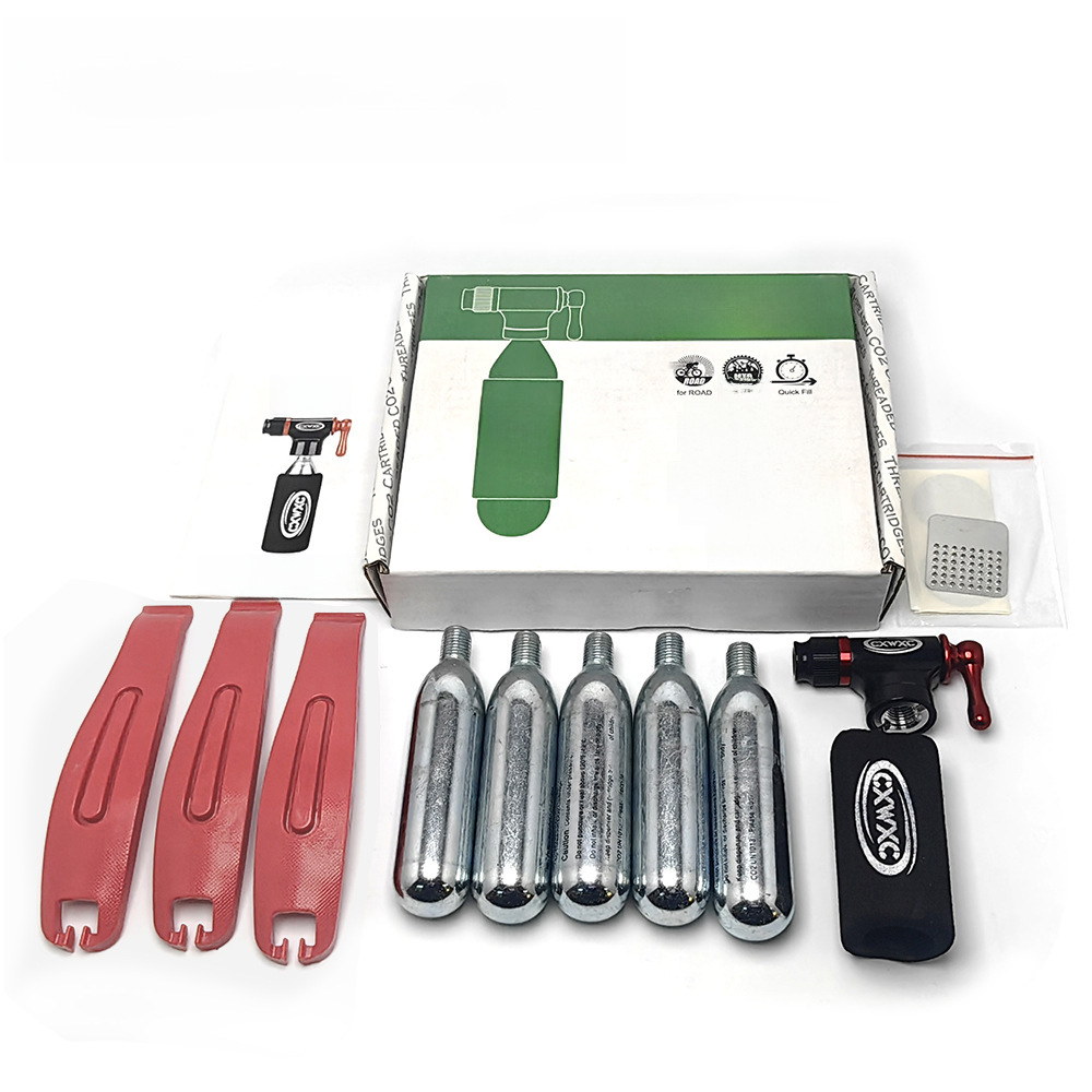 | nameOriginal | Inflatable head bicycle inflatable nozzle mountain road car CO2 gas cylinder inflatable small steel cylinder sponge set CXBT-4P |