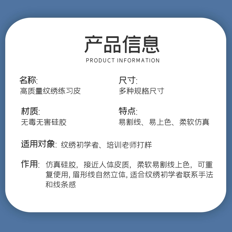 | nameOriginal | Ingenious tattoo practice leather, semi-permanent simulated silicone leather, high-quality eyebrow, eye, lip and eyeliner practice fake leather, imitation leather |
