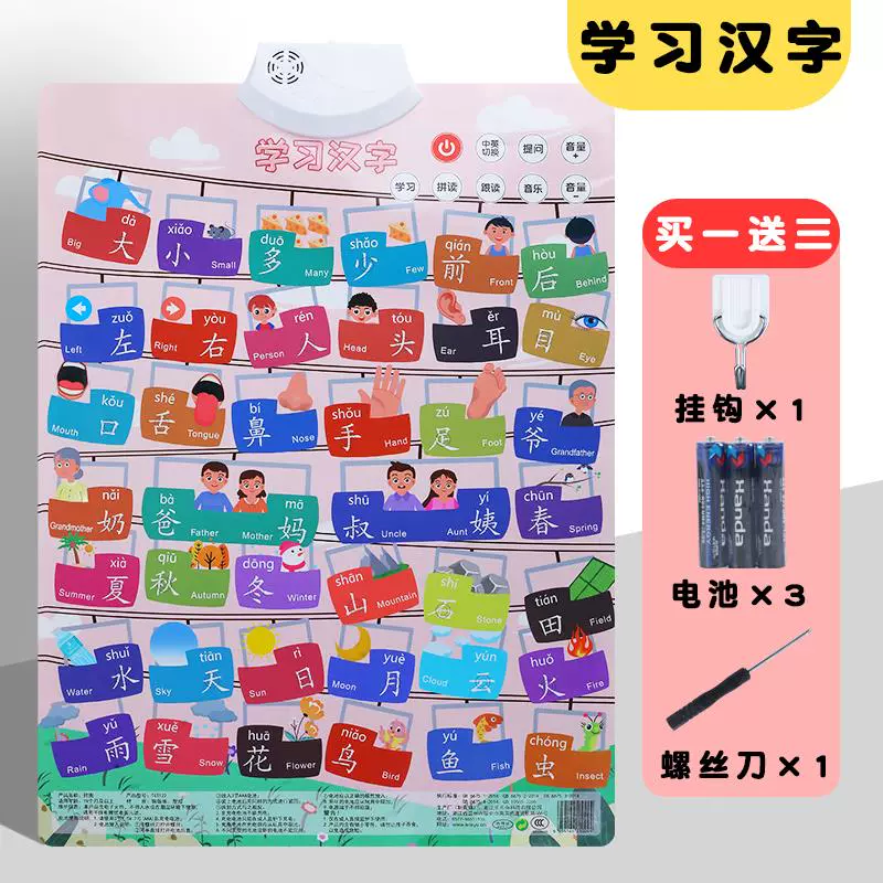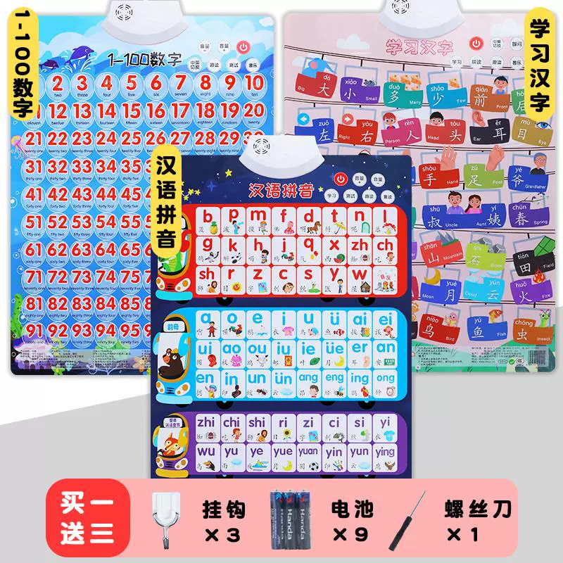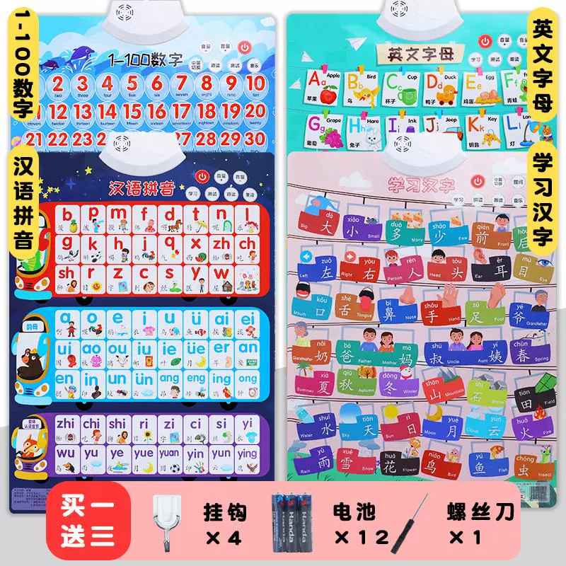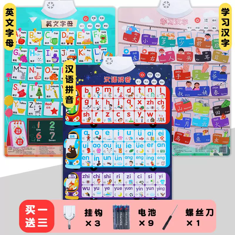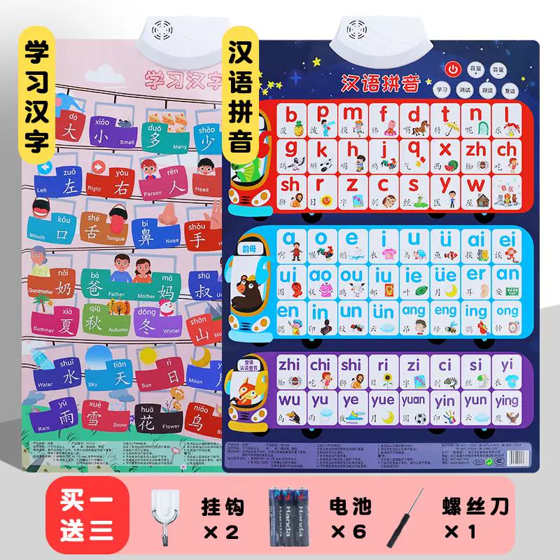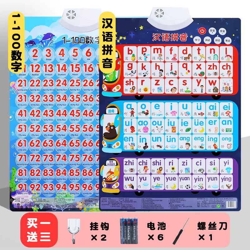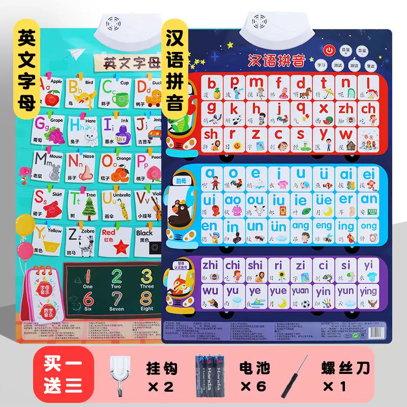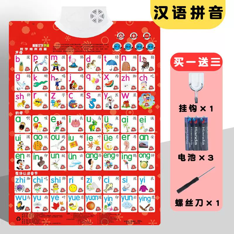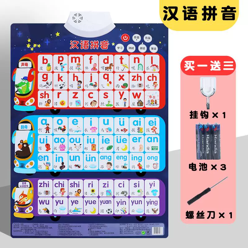 Initials and vowels audio wall chart Chinese Pinyin alphabet wall sticker full list first grade spelling training learning artifact