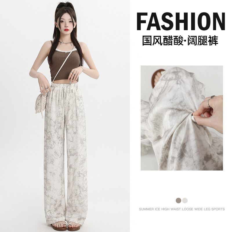 | nameOriginal | Ink Painting Chinese Style Ice Silk Wide Leg Pants Women's Thin 2024 Summer New Fashion Draped Casual Straight Pants |